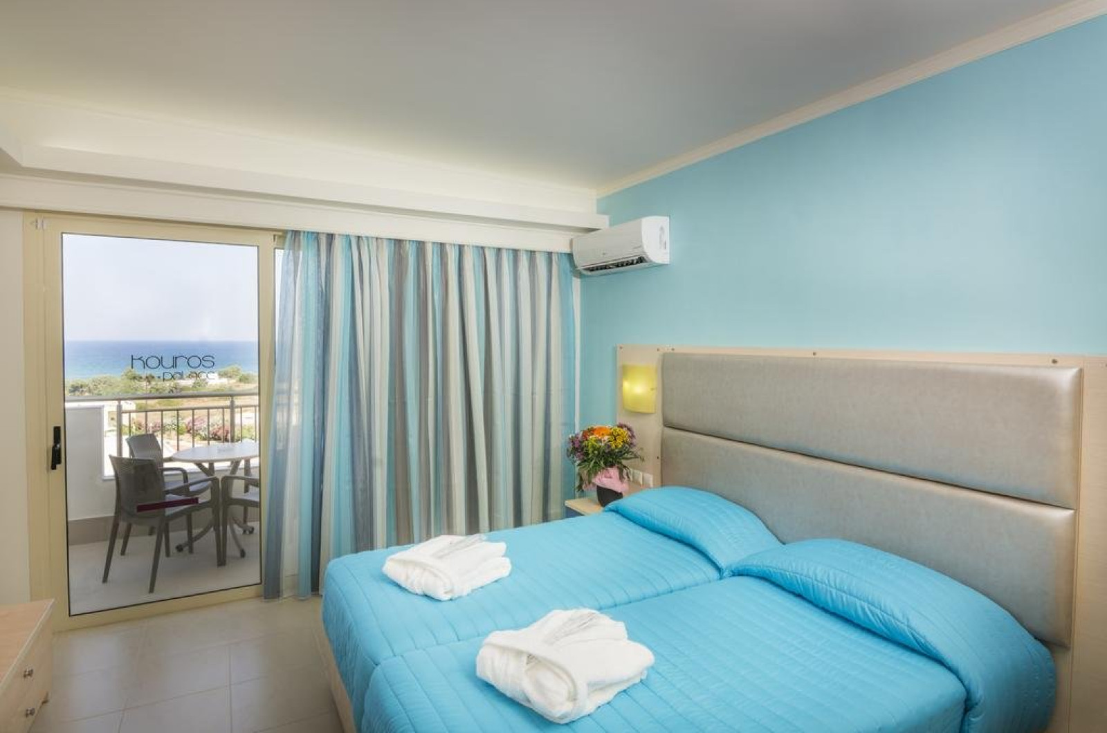 Descriere:Kouros Palace este un hotel nou de 5*, construit pe o colina, in armonie cu mediul inconjurator, avand o priveliste extraordinara spre apus.