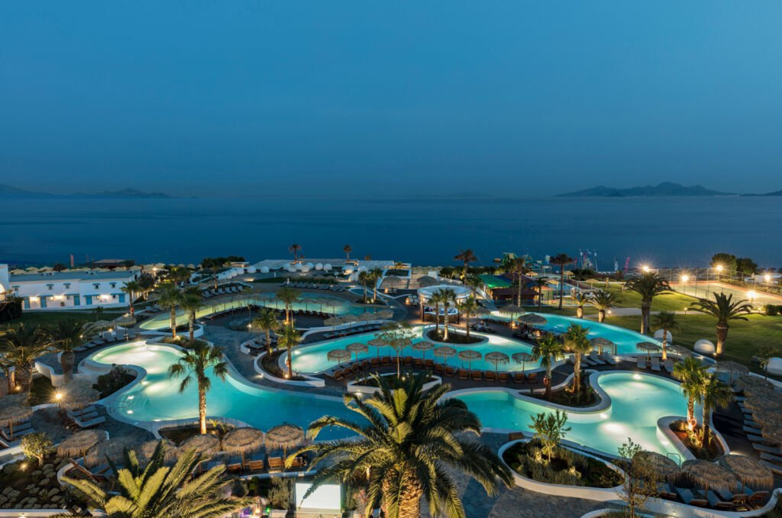 Descriere: Hotelul a fost deschis in 1981, renovat in 2011 si are 455 camere si apartamente situate in bungalouri si in cladirea principala.Localizare: in zona Kardamena, pe plaja cu nisip si pietricele, la 5 km de statiunea Kardamena, la 32 km de orasul Kos, la 11 km de aeroport. Dotari camera: baie cu cada sau dus, uscator de par,aer conditionat, TV satelit, minibar (cu plata), seif (cu plata), telefon, balcon sau terasa. Facilitati hotel: 3 restaurante, 4 baruri, 3 piscine in aer liber din care una cu apa sarata, o piscina cu tobogane si o piscina pentru relaxare, 2 tobogane pentru adulti, piscina pentru copii, sezlonguri si umbrelute la piscina gratuit, internet (cu plata), minimarket, magazin de suveniruri si bijuterii, inchiriere de masini si motoscutere. Clasificarea oficiala a hotelului in Grecia: 4*. Activitati: 2 terenuri de tenis, volei pe plaja, polo pe apa, tenis de masa, darts, baschet, salon de bridge, programe de animatie si divertisment. Cu plata suplimentara: biliard, sporturi acvatice, centru spa (la hotelul Mitsis Blue Domes). Facilitati pentru copii:piscina cu apa dulce, piscina cu apa de mare, loc de joaca, miniclub, juniorclub, programe de animatie, zona pentru copii in restaurant.