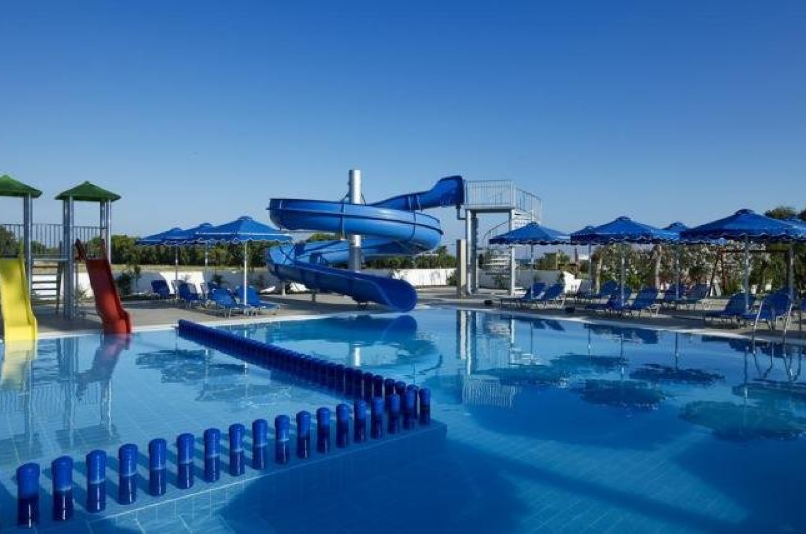 Caracteristici hotel: deschis in 1976, renovat in 2008, 338 camere si apartamente situate in cladirea principala si in cladirile anexa, 3 restaurante, 4 baruri, 2 piscine in aer liber cu apa de mare, jacuzi, piscina pentru copii cu apa de mare, sezlonguri si umbrelute la piscina gratuit, internet (cu plata), minimarket. Clasificarea oficiala a hotelului in Grecia: 4*.