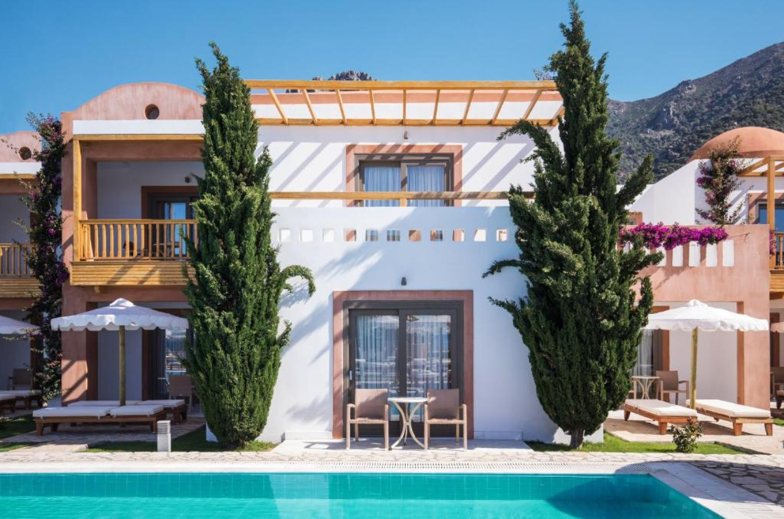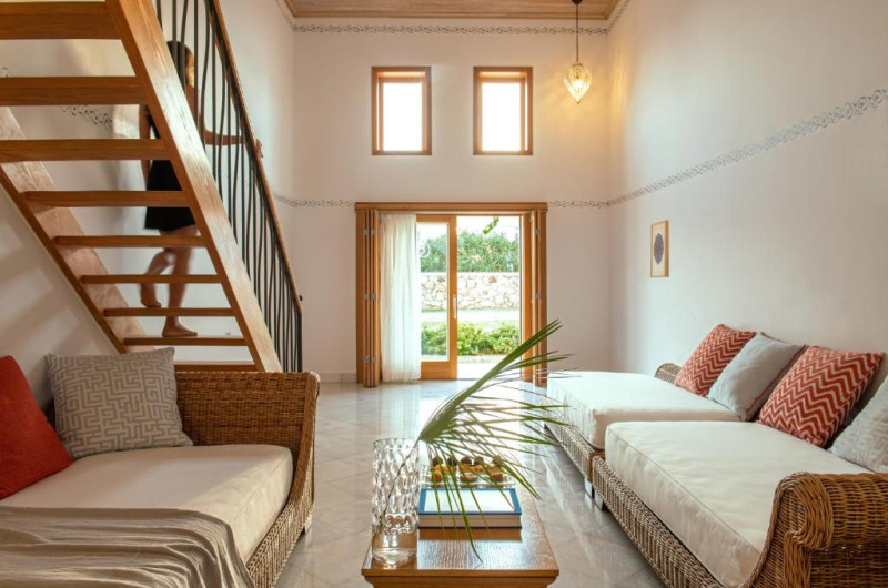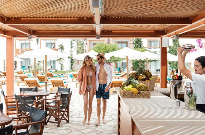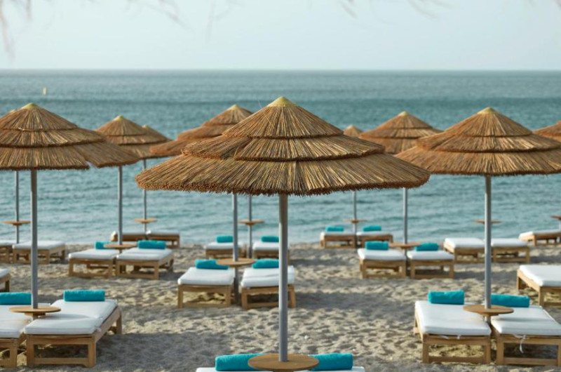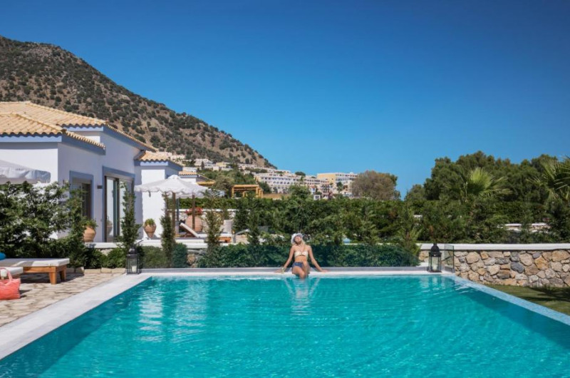 Mitsis Selection Blue Domes, de 5 stele, pe malul mării, oferă piscine in aer liber. Hotelul all inclusive oferă oaspeților mai multe opțiuni de luat masa și baruri.