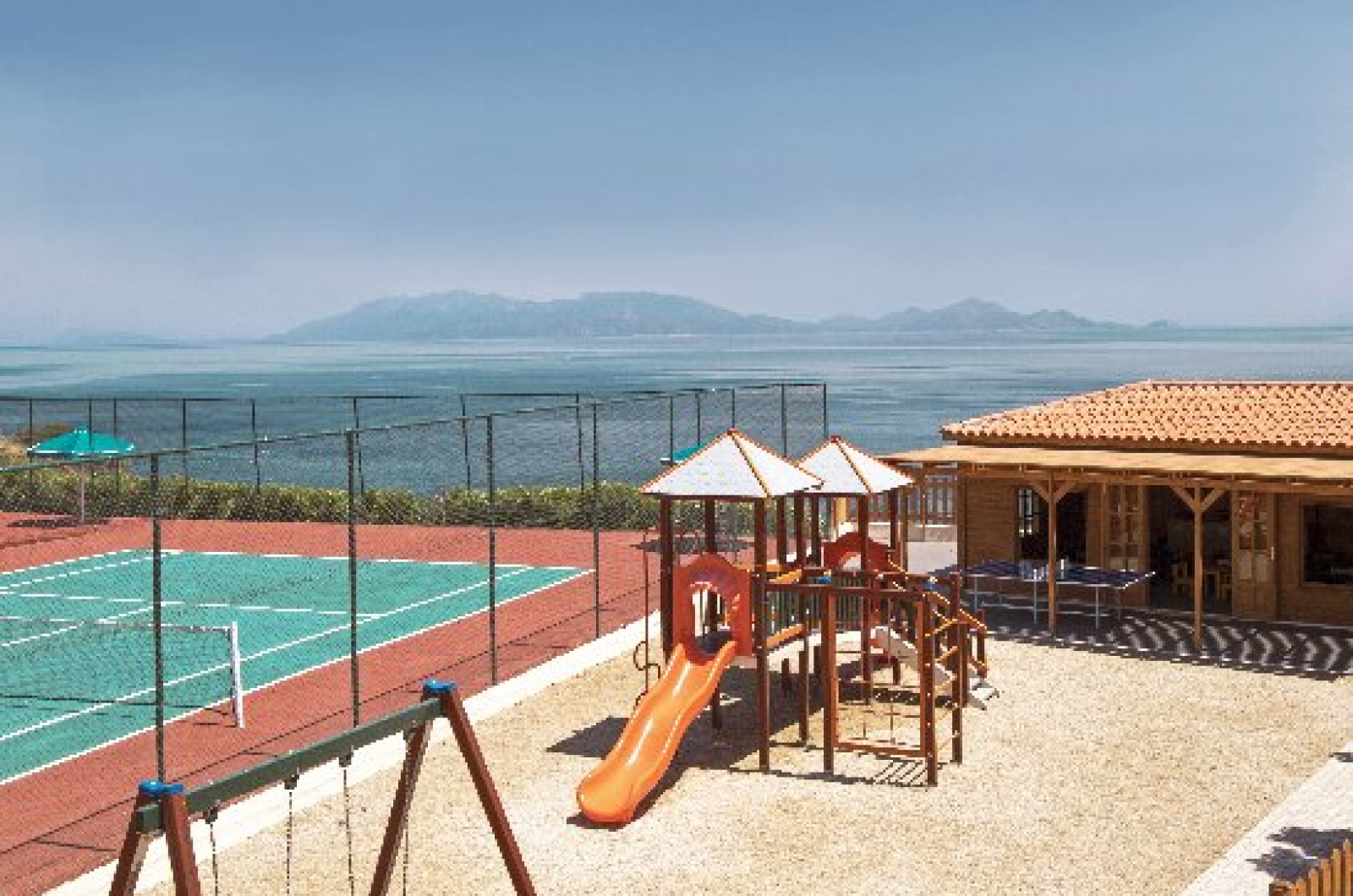 Facilitati hotel: Hotelul dispune de urmatoarele facilitati: restaurant bufet, restaurant italian, taverna, 4 baruri, piscina, water park cu tobogane, piscina si mini club pentru copii, mini disco, echipa de animatie, amfiteatru, facilitati fara costuri suplimentare (centru fitness, 2 terenuri de tenis, biliard, tenis de masa, volei si fotbal pe plaja, canoe, hidrobiciclete, windsurfing - doar in baza unui certificat valabil), facilitati contra cost (sporturi acvatice ca ski nautic, jet ski, paraglding, catamaran, cursuri de scuba diving).