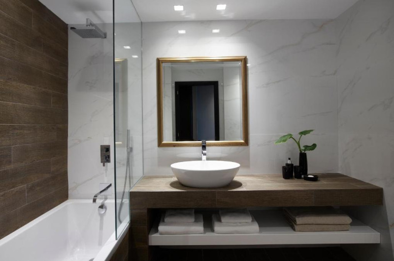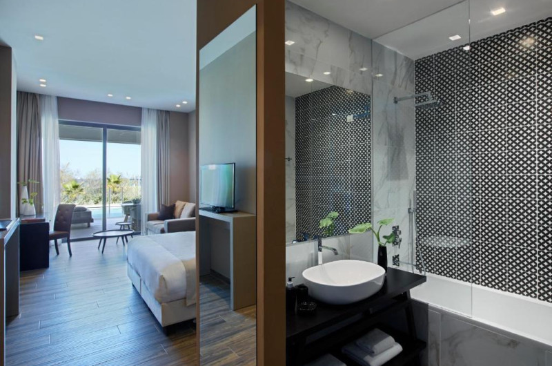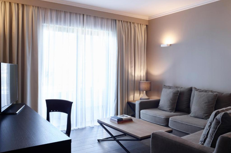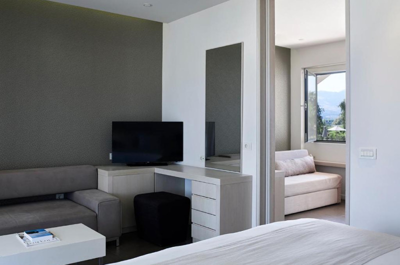La acest hotel, camerele oferă dulap pentru haine. Baia proprie oferă articole de toaletă gratuite. Camerele de la Pelagos Suites Hotel & Spa sunt dotate cu o zonă de relaxare și un televizor cu ecran plat cu canale prin satelit.