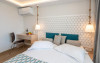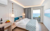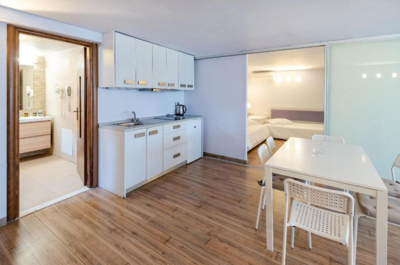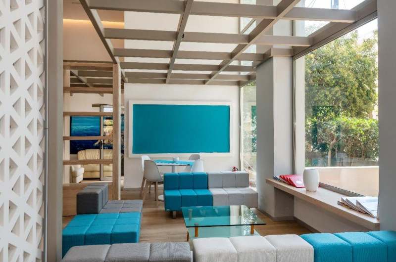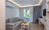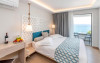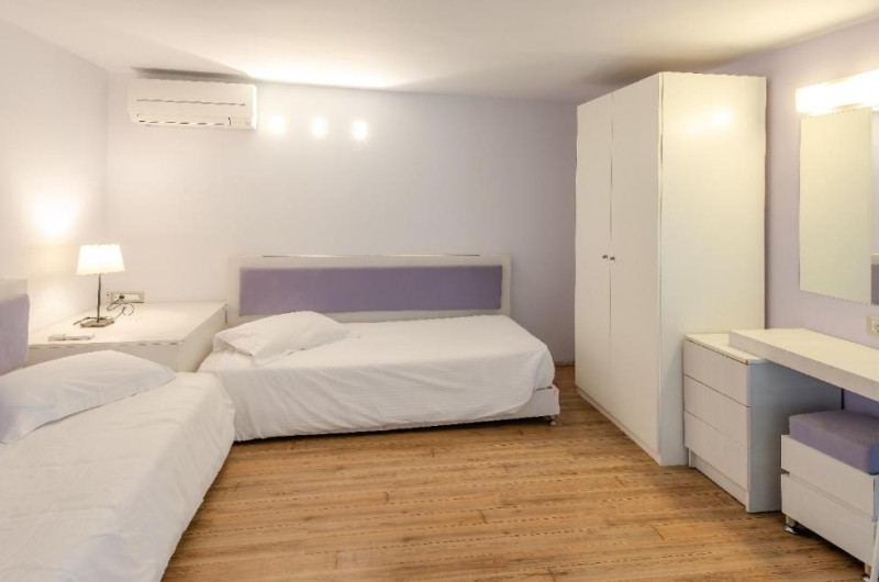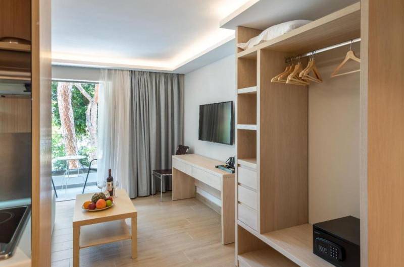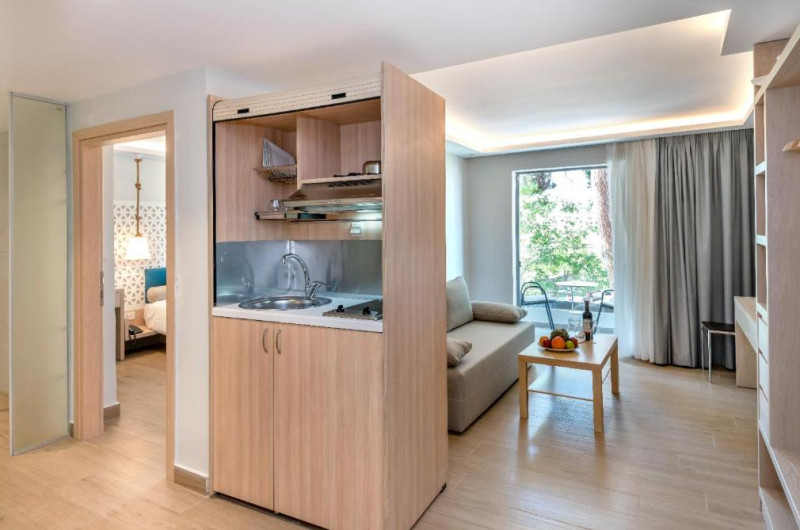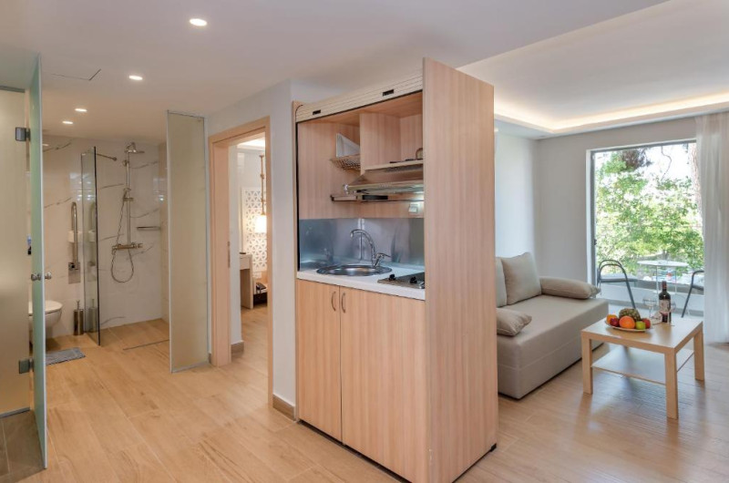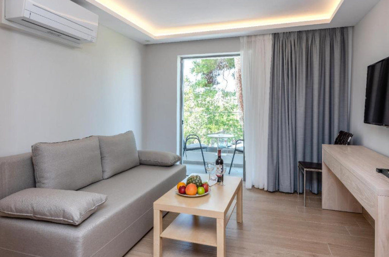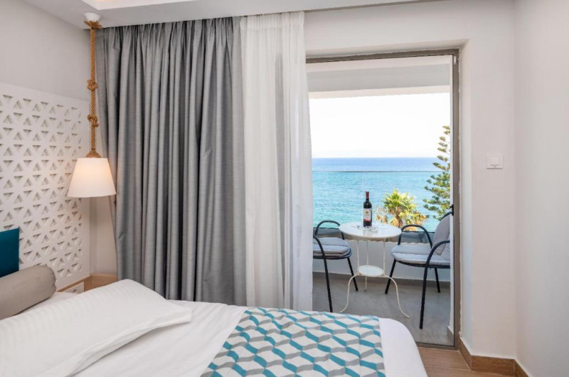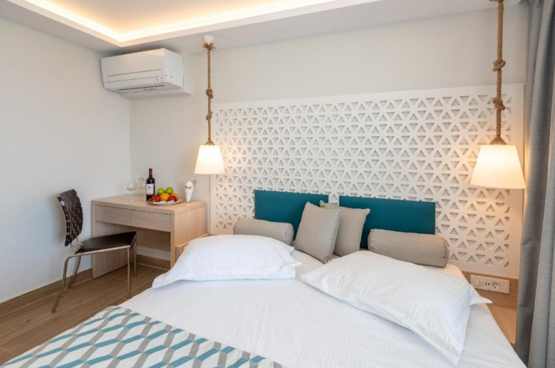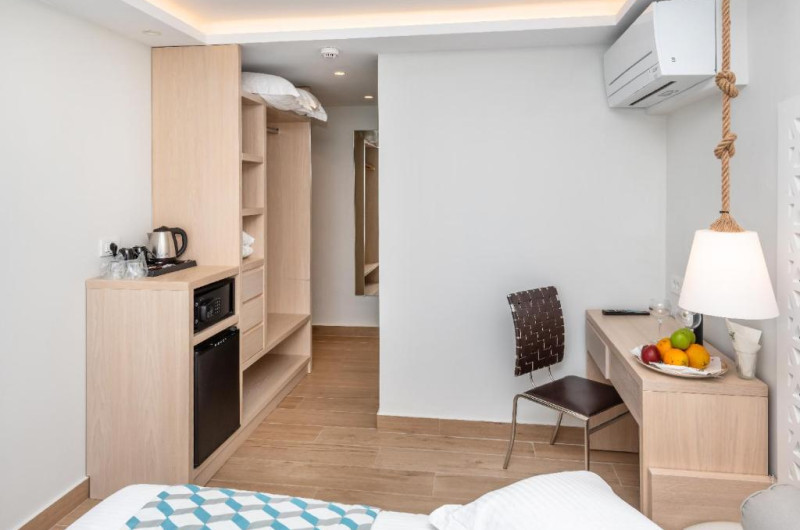 Camerele și suitele de la Triton sunt decorate elegant. Acestea sunt dotate cu TV prin cablu, minibar și uscător de păr. Unități au podea cu parchet și ferestre izolate fonic. Cele mai multe camere au vedere la Marea Egee.