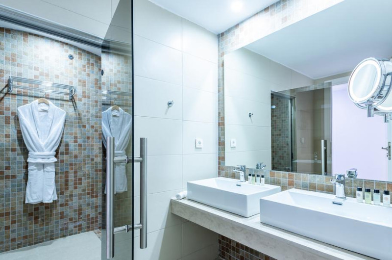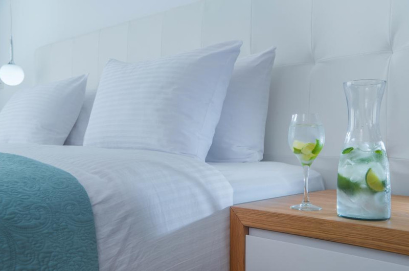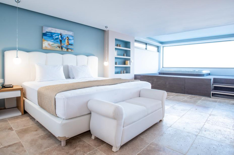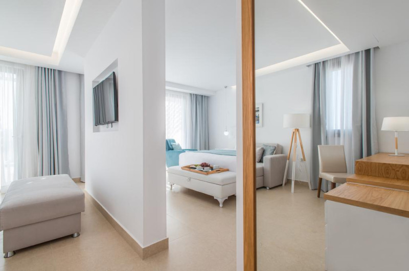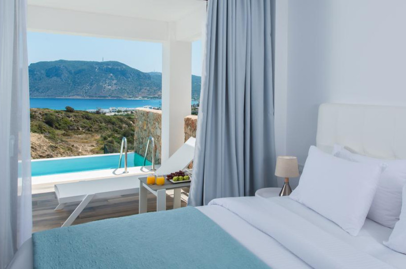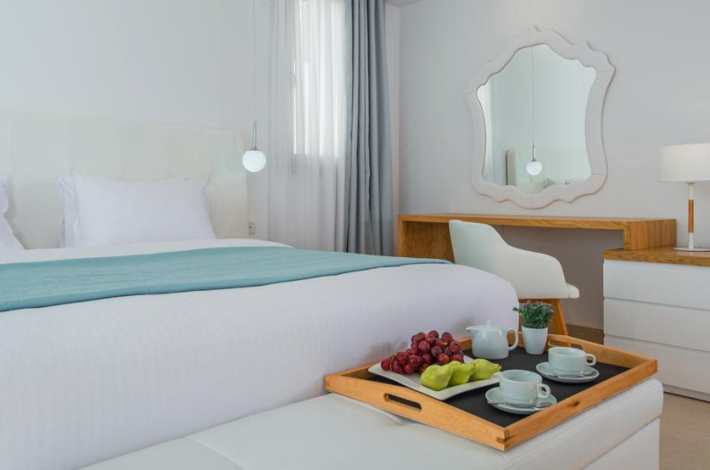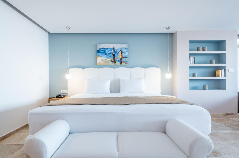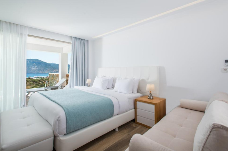 Sunt disponibile 41 camere. În camere există baie cu cadă sau duș, foehn, articole de toaletă gratuite, precum și halate de baie și papuci. Un minibar și o mașină pentru preparare cafea sau ceai se află în fiecare cameră. Oaspeții pot solicita serviciul de room service pentru a servi masa sau diverse băuturi. Unele camere au balcon cu vedere la mare sau la grădină. Camerele confortabile de la White Rock Of Kos au pardoseală de gresie/ marmură, aer condiționat, Tv cu canale prin satelit și seif. Oaspeții au acces gratuit la serviciul Wi-fi în camere. Curățenia in cameră se face zilnic. Anumite camere au zonă de relaxare cu canapea și cadă cu hidromasaj care asigură un plus de confort și răsfăț. Proprietatea oferă camere pentru nefumători.
