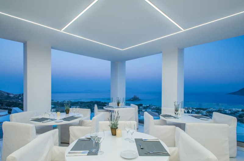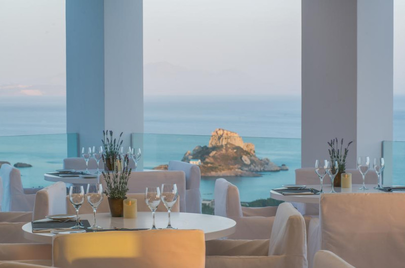 La White Rock Of Kos oaspeții au la dispoziție un restaurant care servește mâncare à la carte. Bucătăria mediteraneană de la White Rock Of Kos propune preparate delicioase care satisfac gusturi diverse. Masa poate fi servită atât în interior, cît si în aer liber, pe terasă, în funcție de vreme. White Rock Of Kos servește zilnic un mic dejun tip bufet în zona de luat masa. Oaspeţii pot avea diverse băuturi răcoritoare sau alcoolice la bar. De asemenea , în cadrul proprietății, există cafenea și snack bar ideale pentru o gustare rapidă.