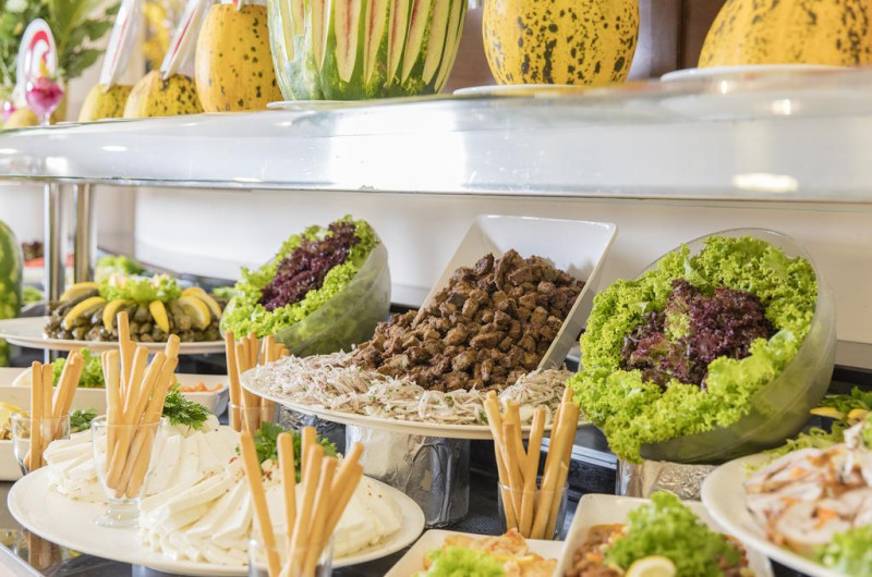 Preparate din bucătăria internațională și turcească așteaptă să fie degustate în fiecare zi la micul dejun, prânz și cină. Masa poate fi servită atât în interior, cît si în aer liber, pe terasă, în funcție de vreme. Oaspeţii pot avea diverse băuturi răcoritoare sau alcoolice la bar. În cadrul proprietății există și un snack bar care servește băuturi și gustări.