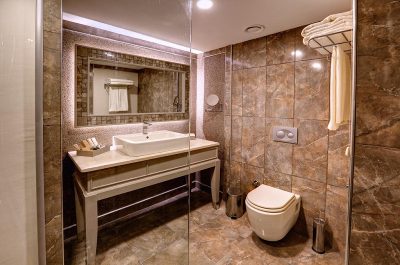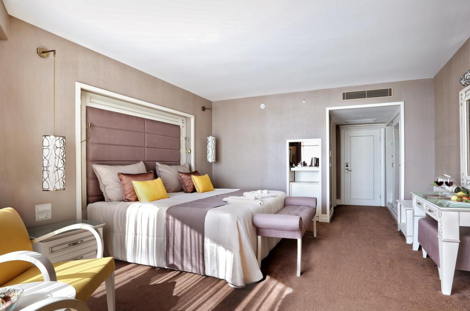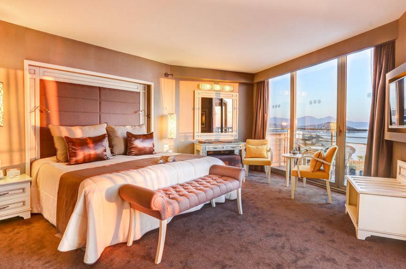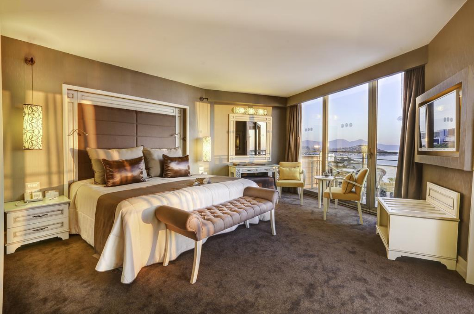 Camerele confortabile de la Suhan 360 Hotel & Spa au pardoseală de gresie/ marmură, aer condiționat, Tv cu canale prin satelit și seif. Fiecare cameră dispune de minibar și cană-fierbător. Oaspeții pot solicita serviciul de room service pentru a servi masa sau diverse băuturi. Unele camere au balcon cu vedere la mare sau la piscină. În camere există baie cu cadă sau duș ce are în dotare foehn și articole de toaletă gratuite. Oaspeții au acces gratuit la serviciul Wi-fi în camere. Curățenia in cameră se face zilnic. Anumite camere au zonă de relaxare cu canapea și cadă cu hidromasaj care asigură un plus de confort și răsfăț. Proprietatea oferă camere pentru nefumători.