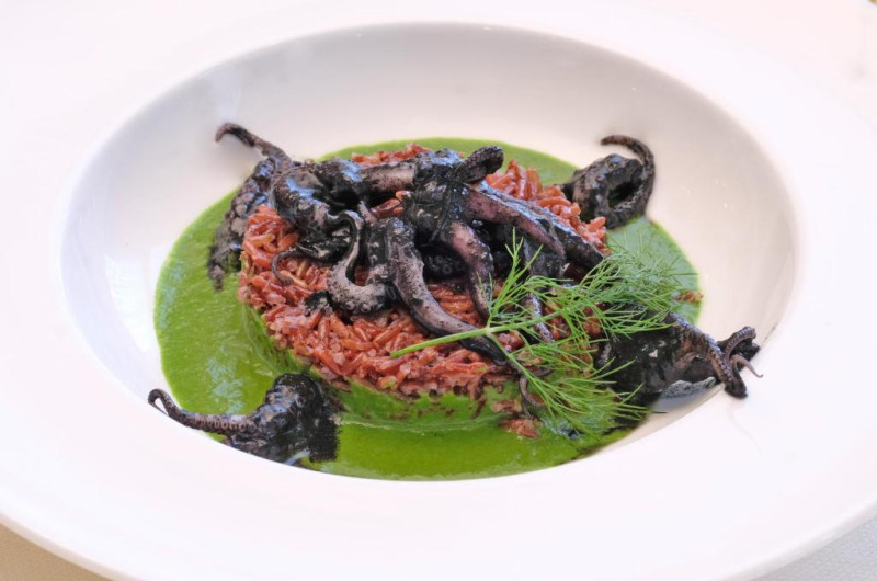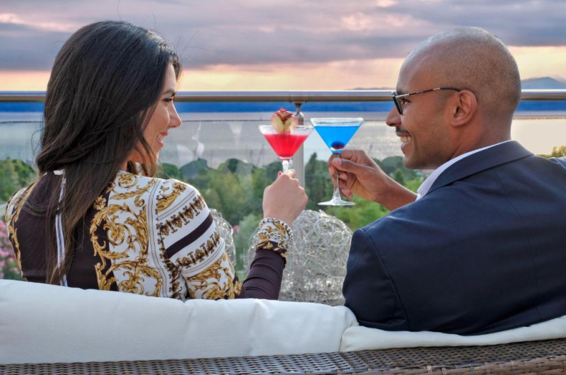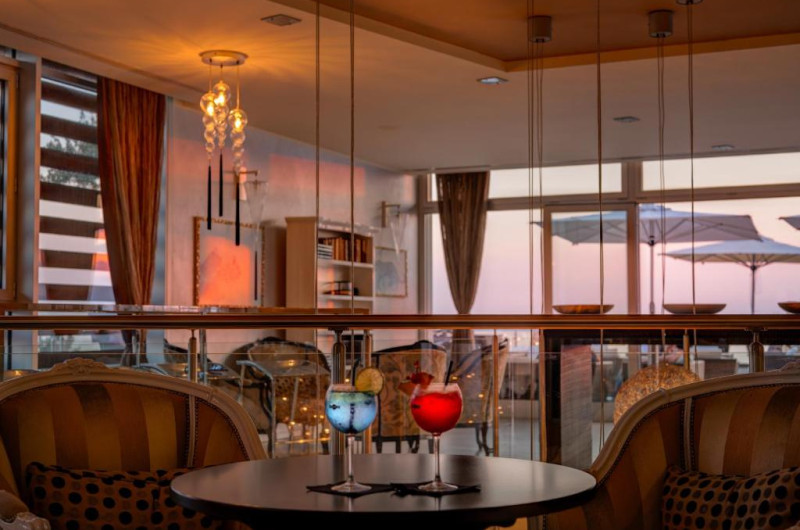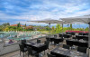 Cu vedere minunată la imprejurimi, barul și restaurantul servesc băuturi, gustări și mancăruri italiene.