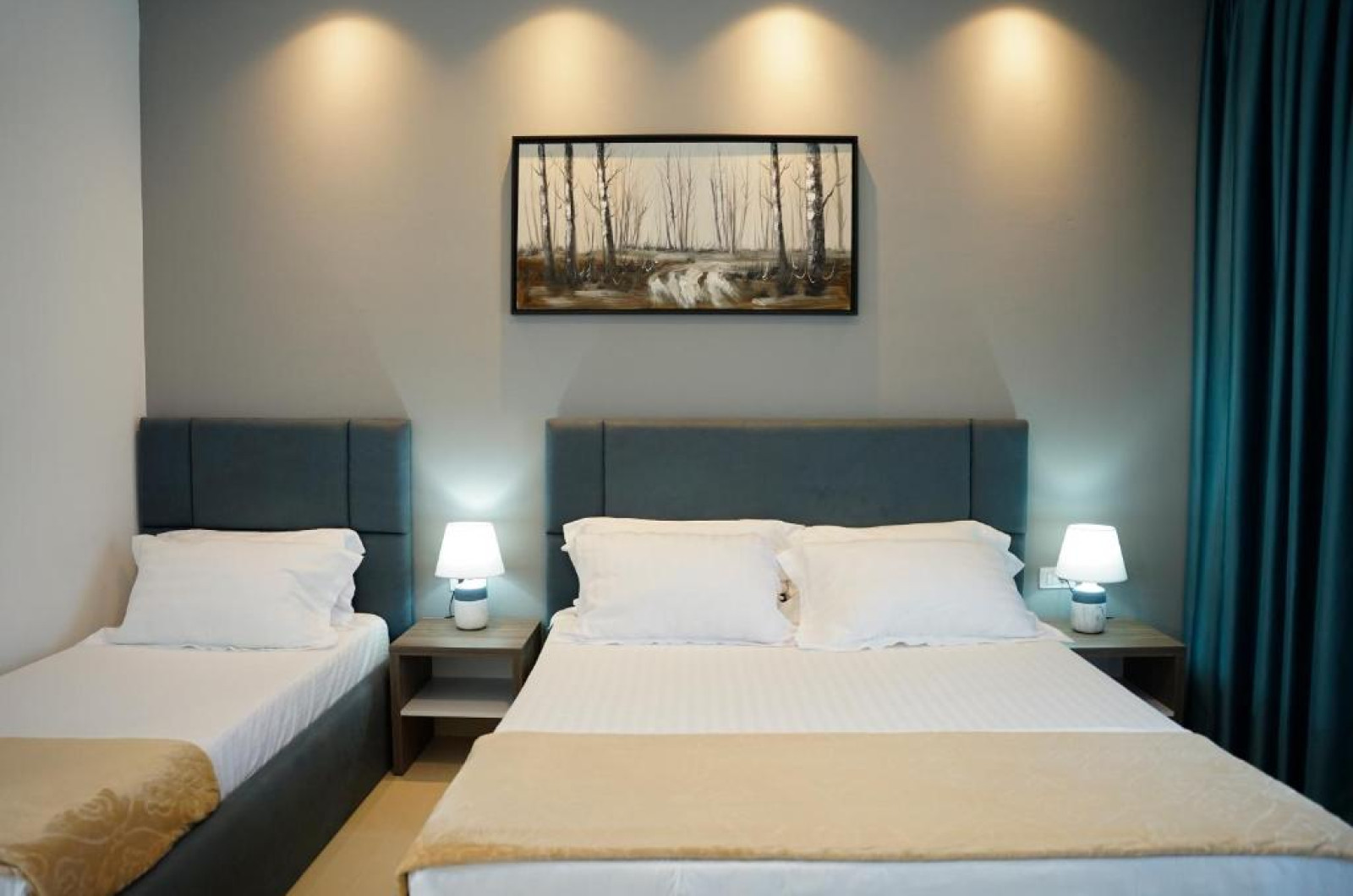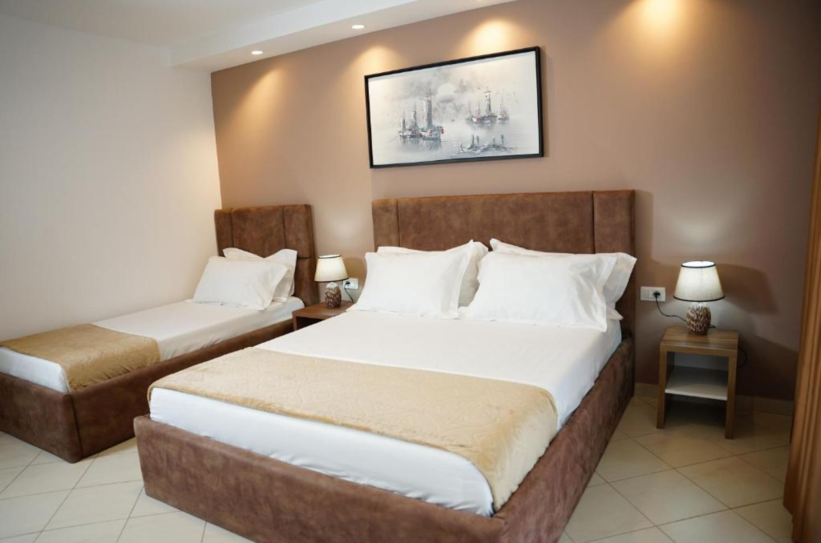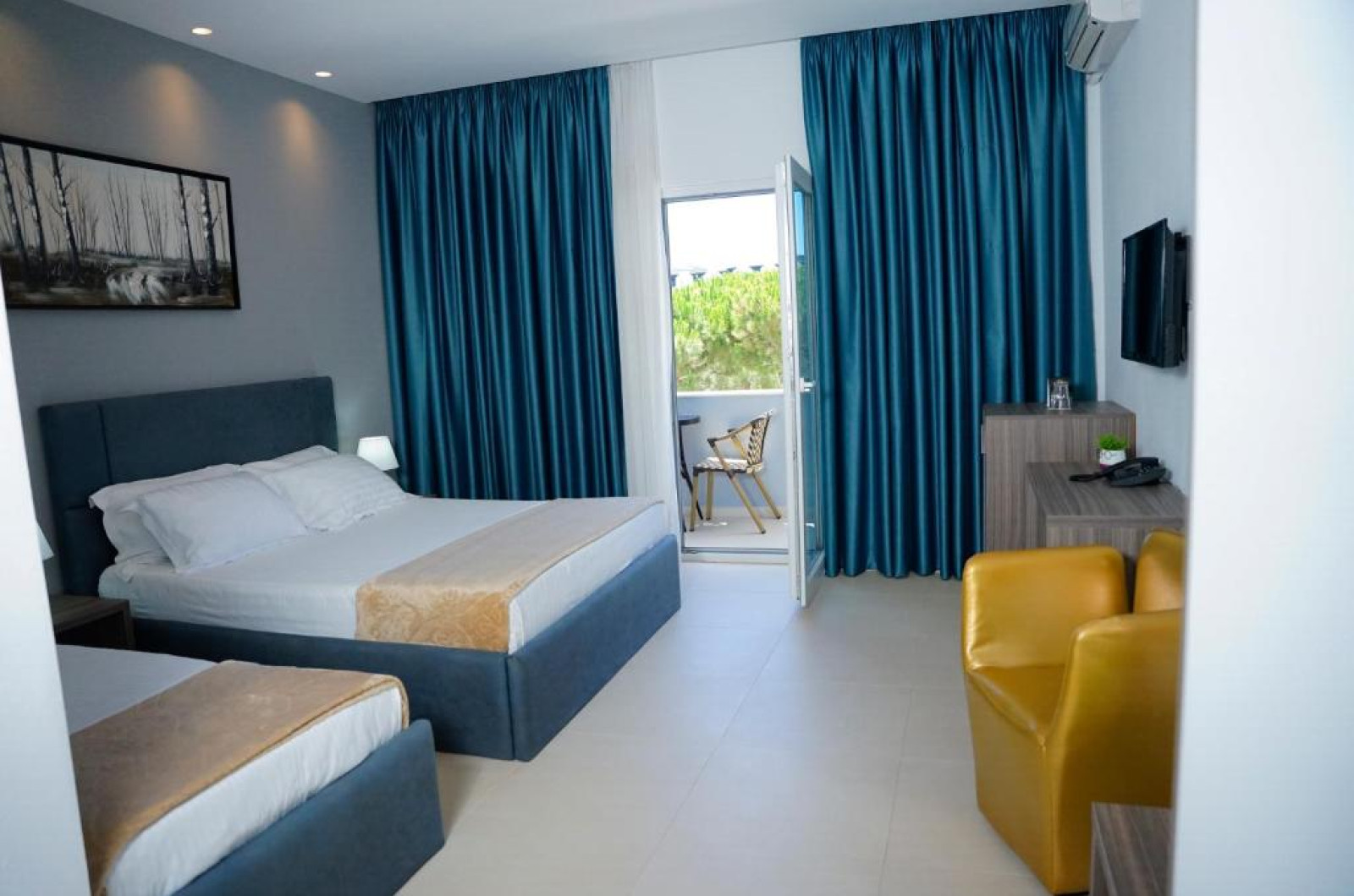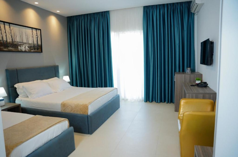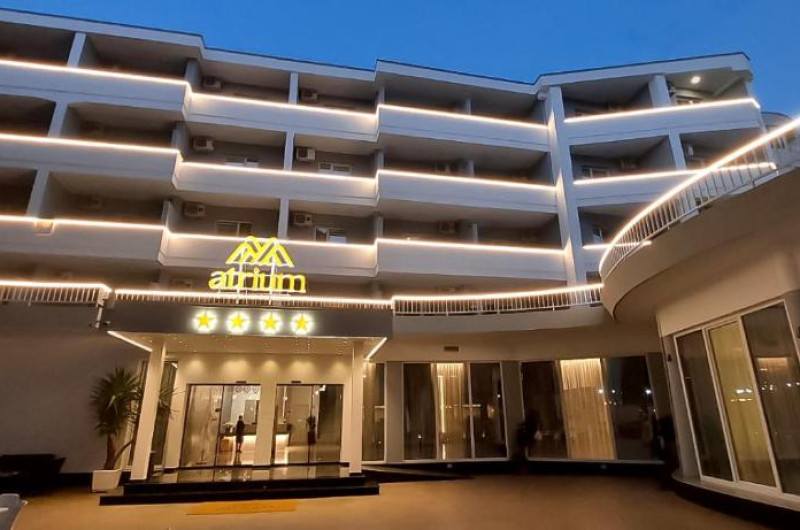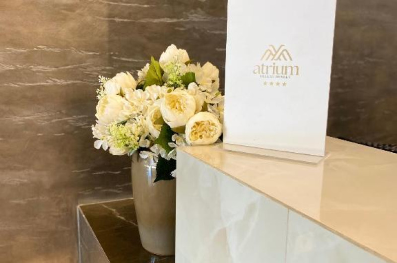Atrium Deluxe Resort se găsește in Golem, la cațiva pași de Plaja Mali I Robit, și are o zonă in aer liber sezonieră, o grădină, un lounge comun și parcare privată gratuită. Situată la 15 minute de mers pe jos de Plaja Qerret și la 1,4 km de Plaja Golem, proprietatea oferă o terasă și un bar. Proprietatea pune la dispoziție sau recepție deschisă non-stop, servicii de transport de la/la aeroport, room-service și WiFi gratuit in intreaga proprietate.