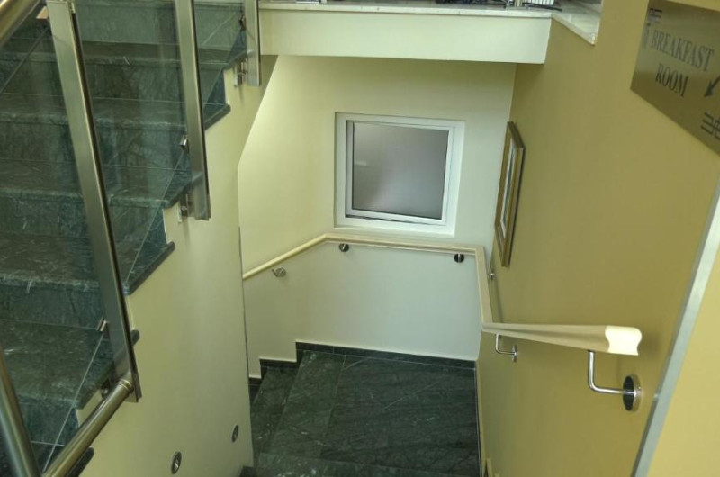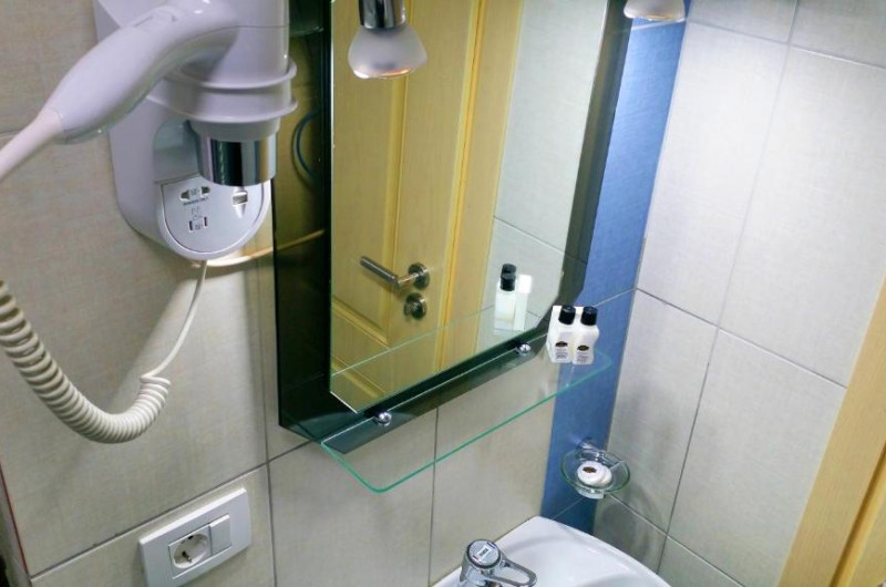 Baia privată are duș și uscător de păr. Camerele sunt păstrate in tonuri de maro și albastru și sunt dotate cu mobilier elegant maro inchis.