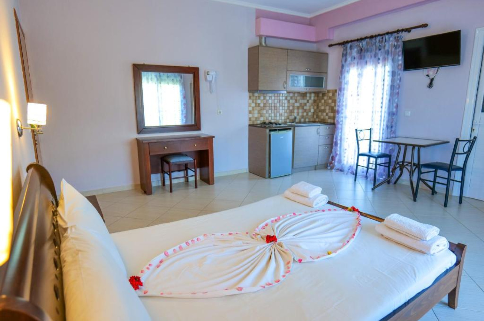 This pensiune găzduiește un restaurant care servește preparate din bucătăria grecească și italiană.