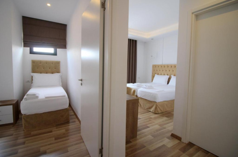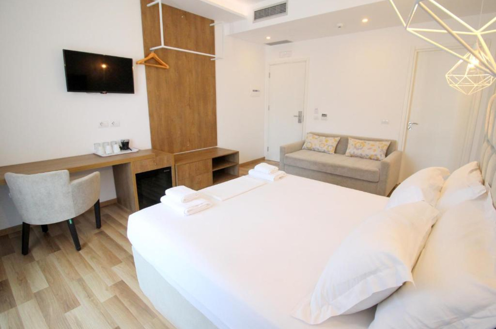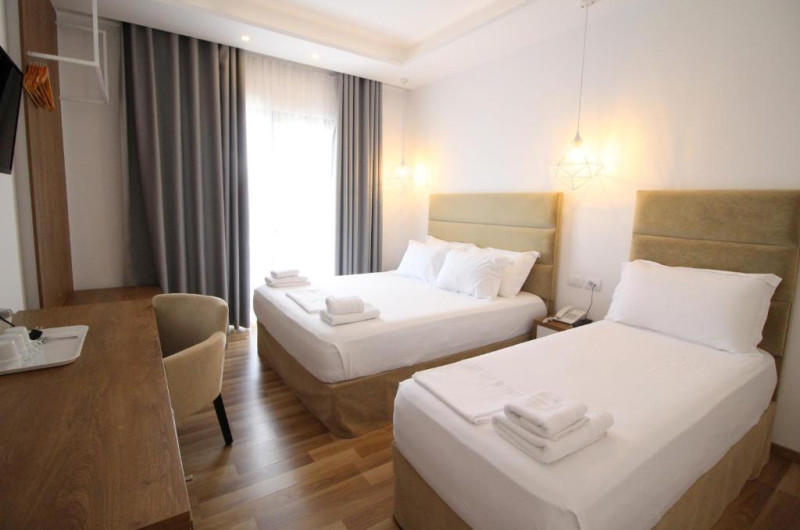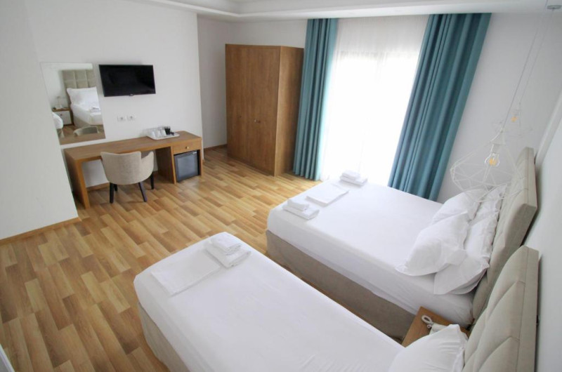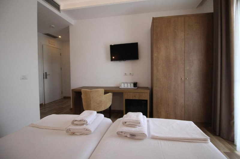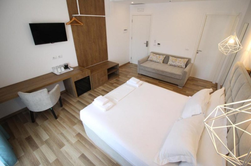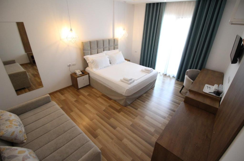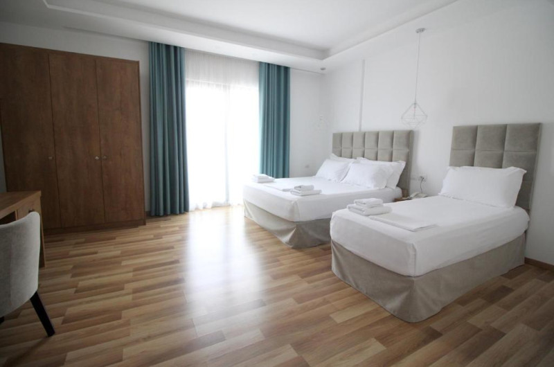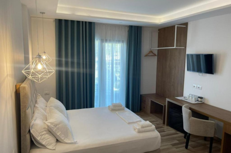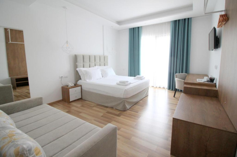 Cazare confortabilă: Hotelul Bianco din Ksamil oferă camere de familie cu aer condiționat, balcoane și băi private. Fiecare cameră include birou, articole de toaletă gratuite și minibar.