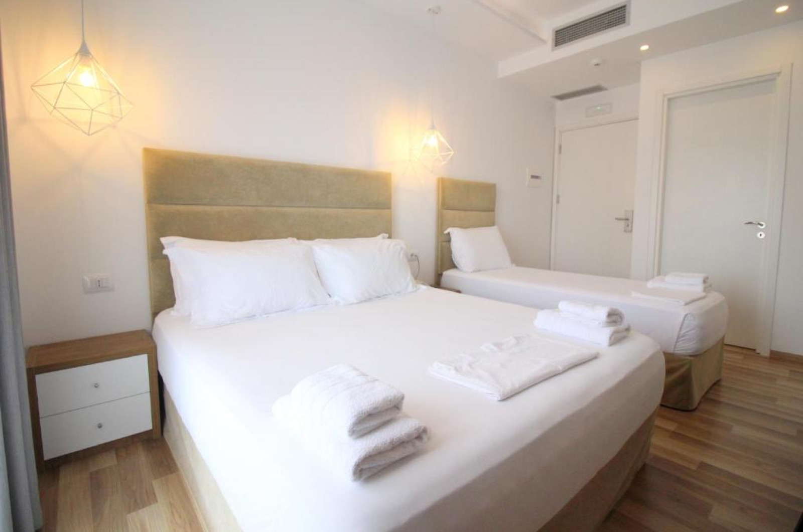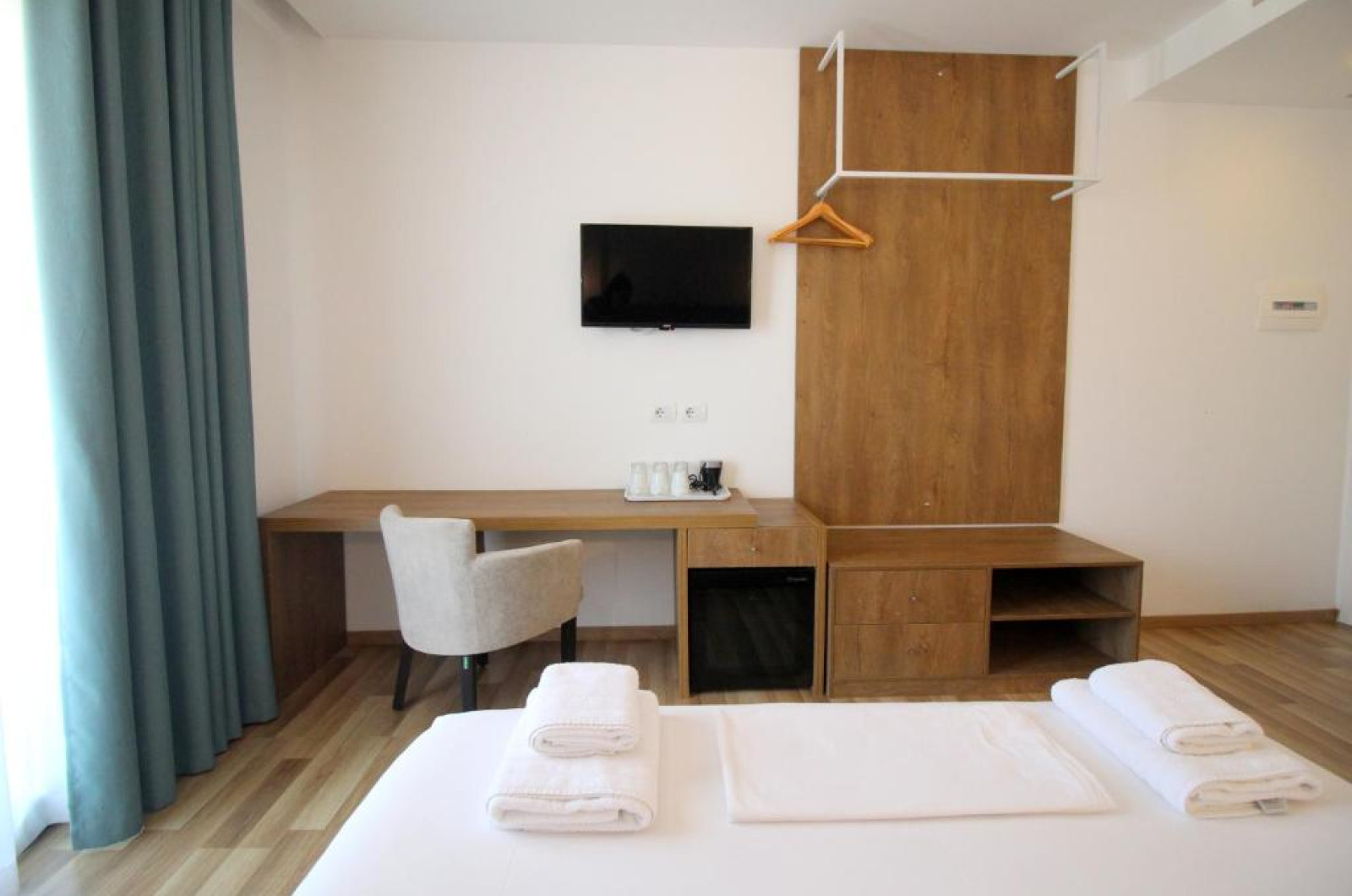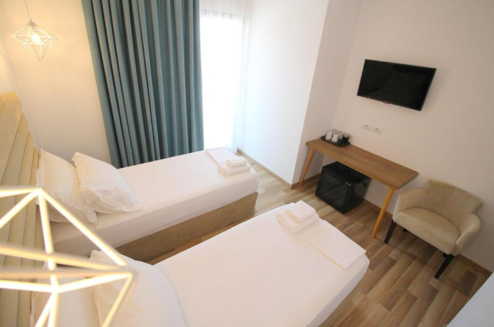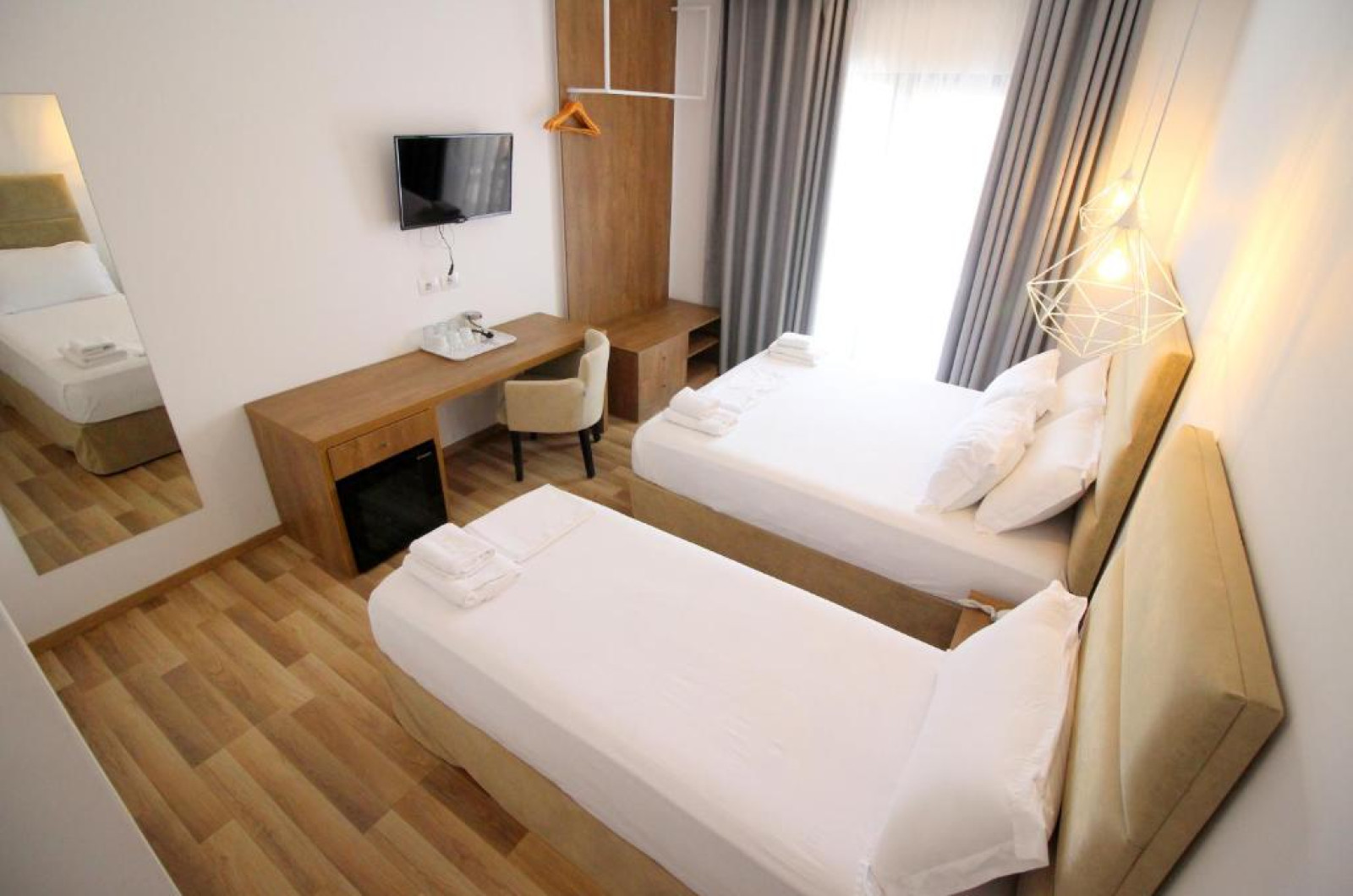 Cazare confortabilă: Hotelul Bianco din Ksamil oferă camere de familie cu aer condiționat, balcoane și băi private. Fiecare cameră include birou, articole de toaletă gratuite și minibar.