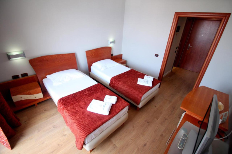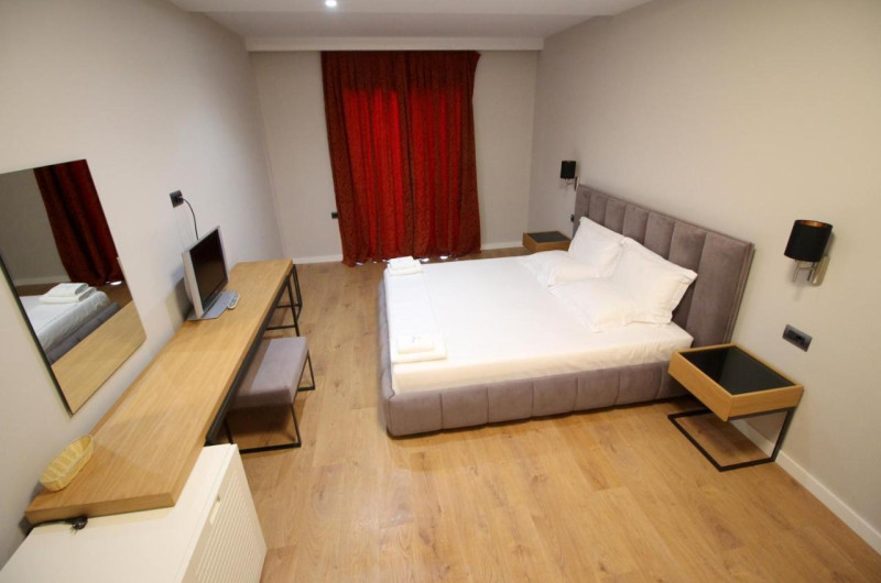 Camerele decorate luminos de la Saranda International au frigider. Majoritatea unităților oferă vedere directă la mare, in timp ce altele au vedere laterală la mare.