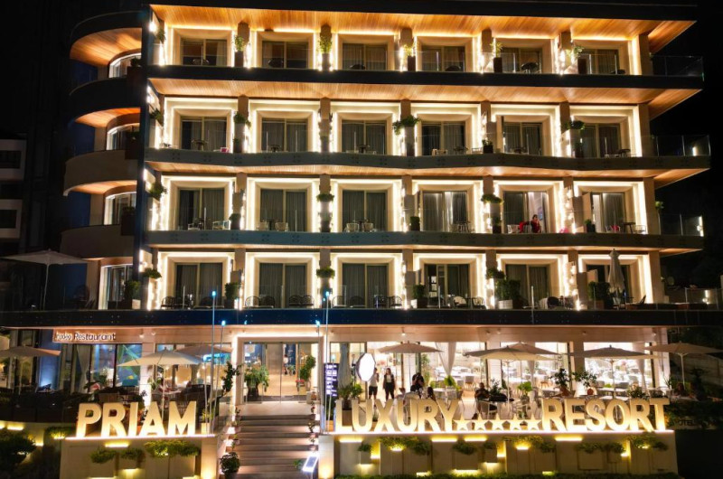 Priam Hotel Luxury Resort se află la 8 minute de mers pe jos de Plaja Ri și la 1,7 km de Plaja Liro. Cel mai apropiat aeroport este Aeroportul Internațional Maica Tereza din Tirana, situat la 157 km de acest hotel.