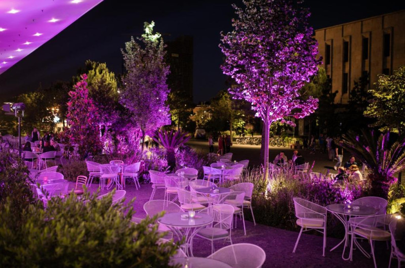 Restaurantul La Pergola Terrace Bar servește specialități tradiționale albaneze, precum și internaționale. Terasa oferă o șansă unică de a savura micul dejun cu o vedere uluitoare asupra pieței principale din Tirana.