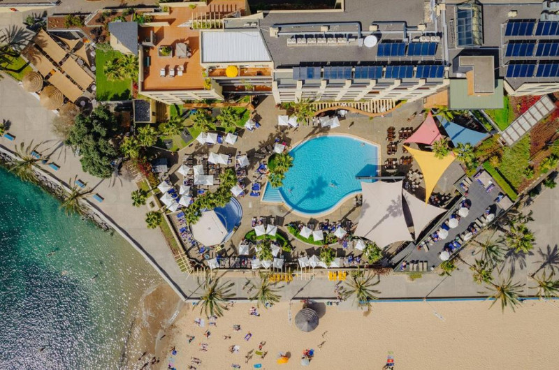 Calheta Beach Hotel, cu vedere la Oceanul Atlantic, este situată pe plaja Calheta. Acest hotel de 4 stele oferă piscine interioare și in aer liber, spa, sală de sport și acces la mare prin plajă. Fiecare cameră are un balcon privat.