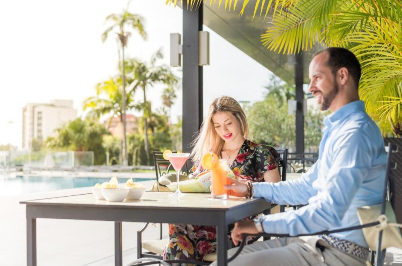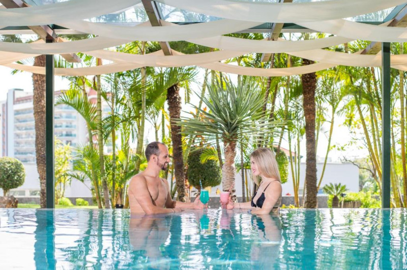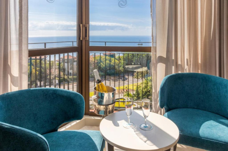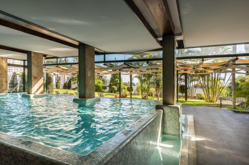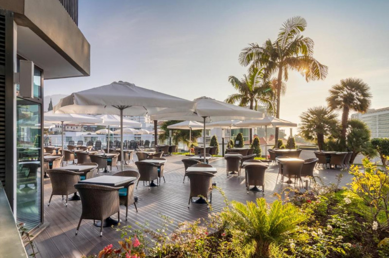 Restaurantul principal servește preparate internaționale și specialități portugheze, iar barul de la piscină este locul perfect pentru cocktailuri și gustări ușoare. Piscina exterioară, inconjurată de șezlonguri și umbrele, oferă un spațiu ideal pentru relaxare sub soarele Madeirei.