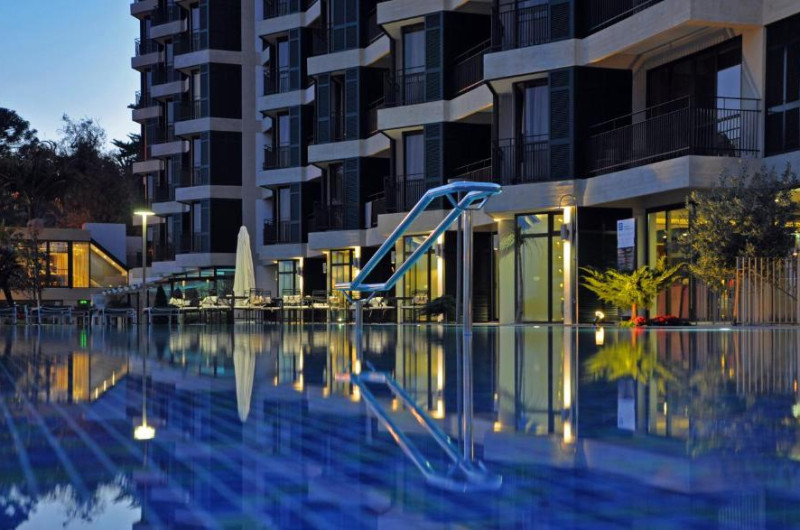 Camerele luminoase și confortabile beneficiază de balcoane private, majoritatea cu vedere spre ocean sau spre grădinile hotelului. Facilitățile de wellness includ o piscină interioară incălzită, saună, baie turcească și sală de fitness modernă.