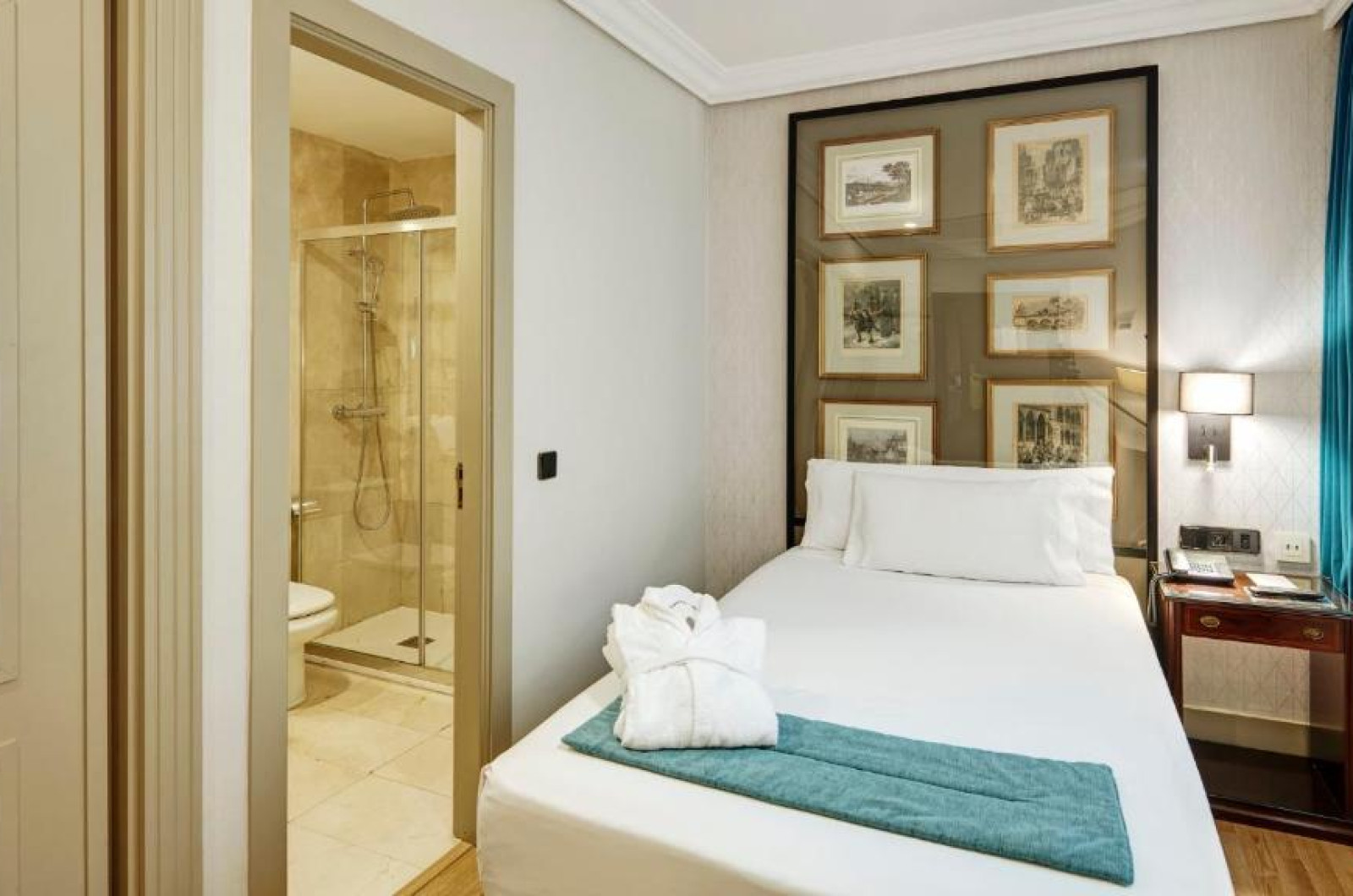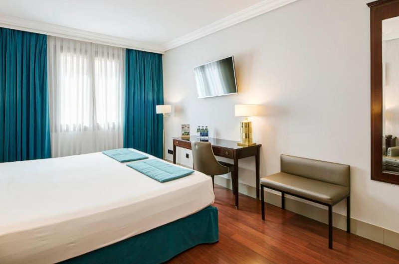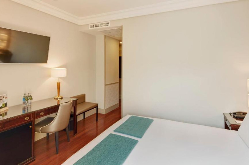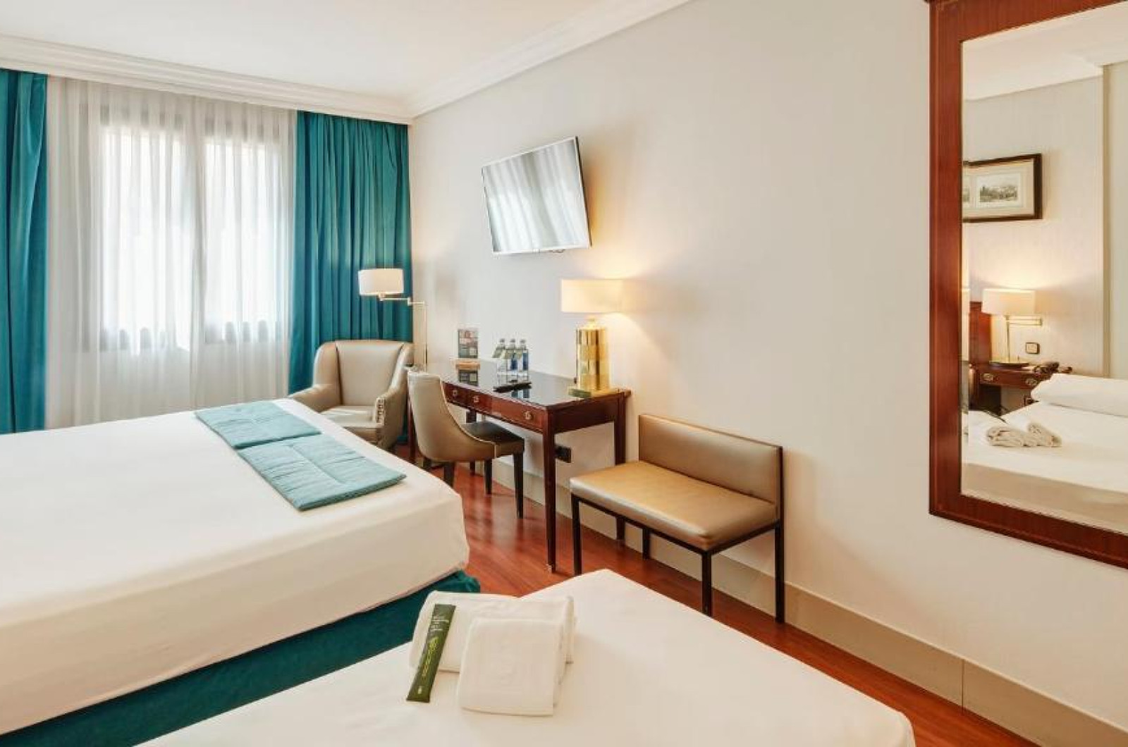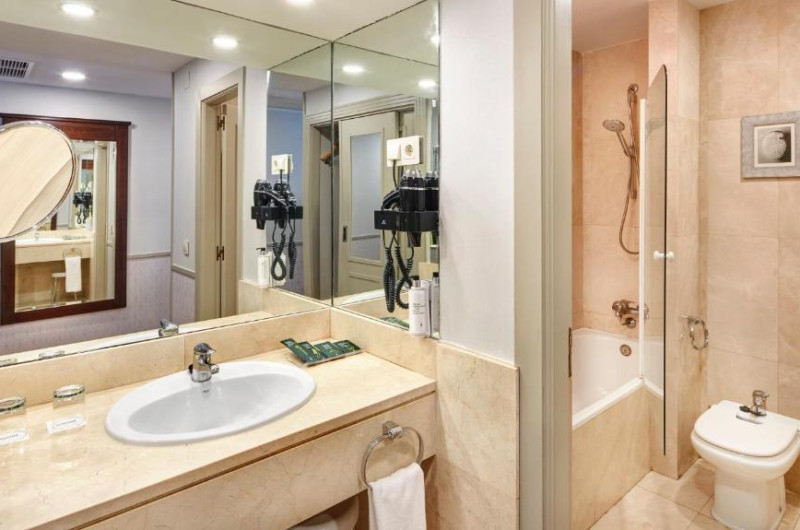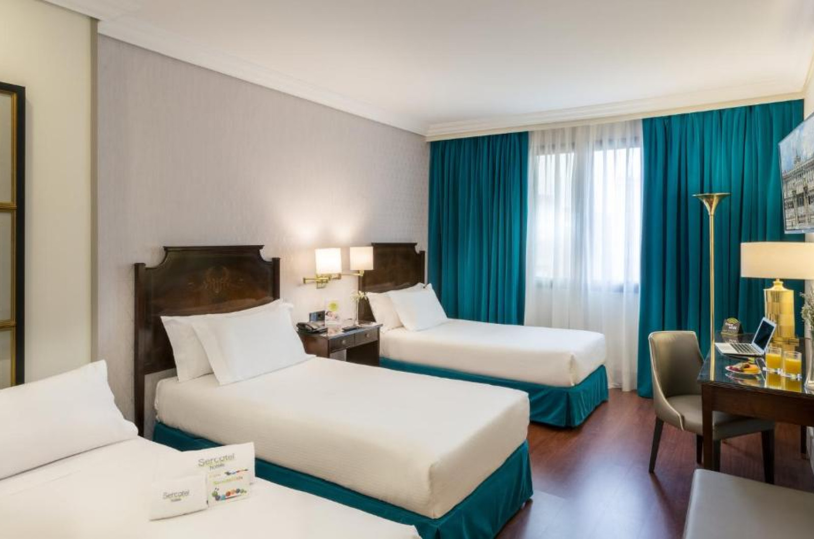 Camerele elegante de la Sercotel Gran Hotel Conde Duque au aer condiționat și baie privată cu duș și articole de toaletă. De asemenea, acestea au seif gratuit pentru laptop, meniu de perne și TV cu ecran plat.
