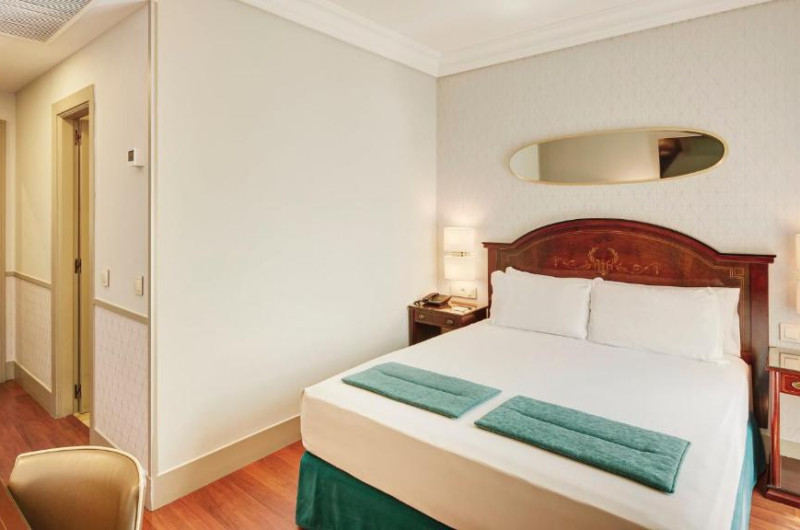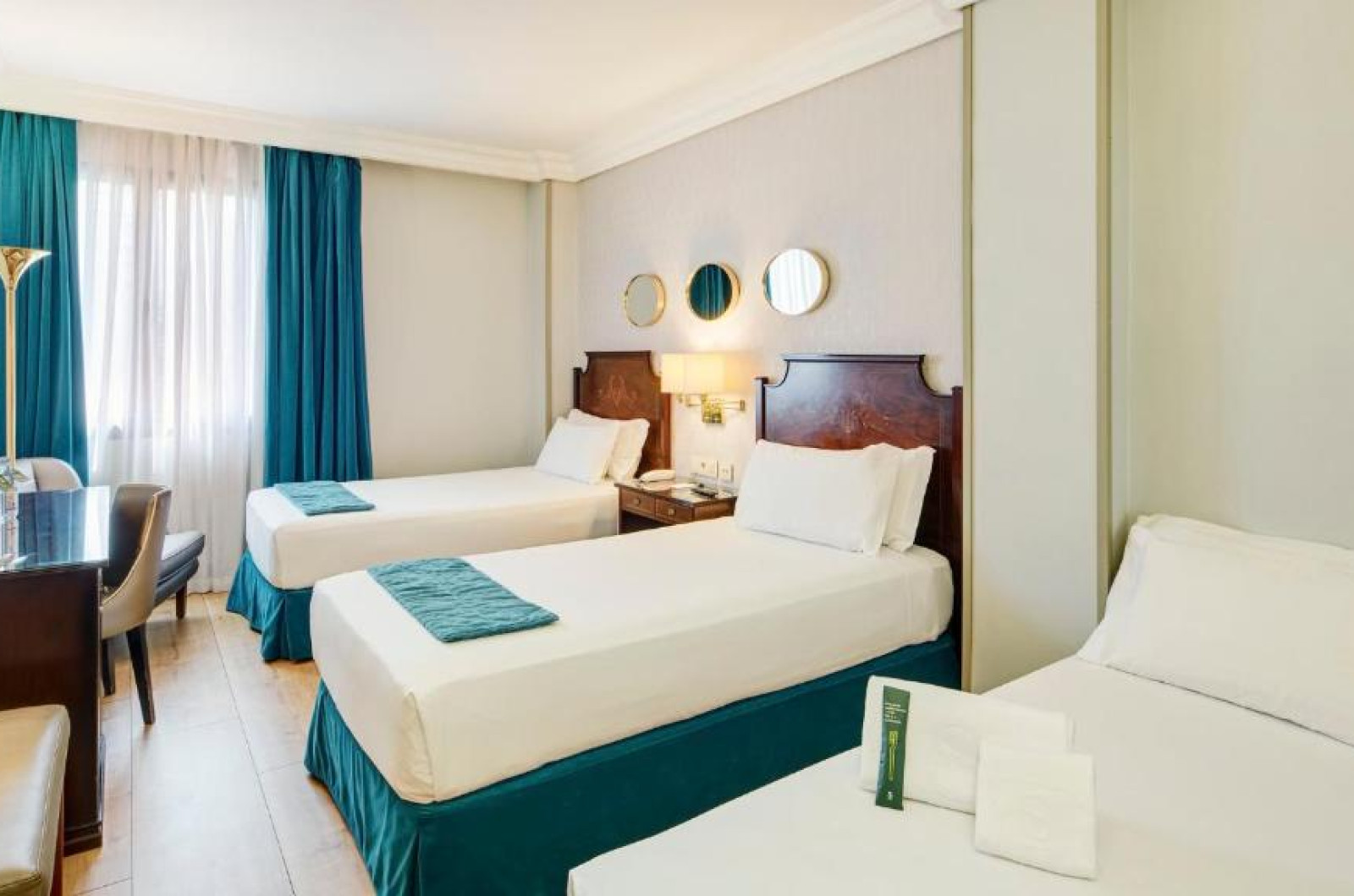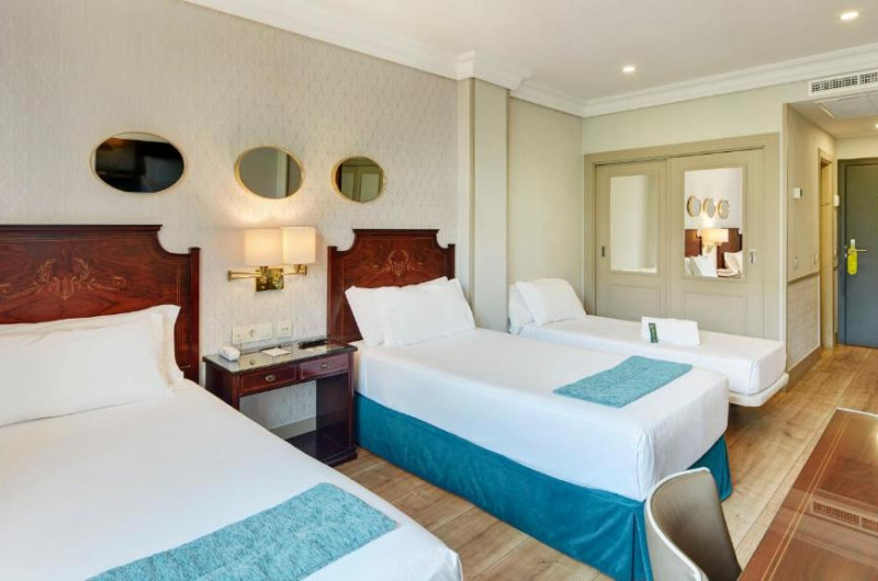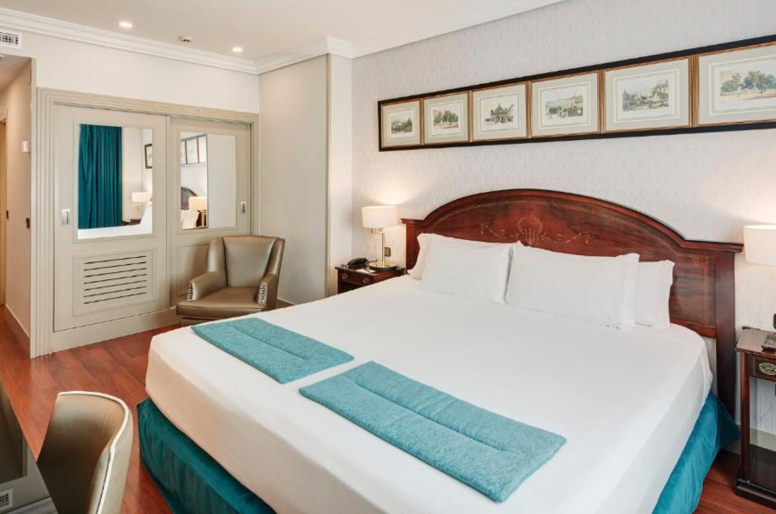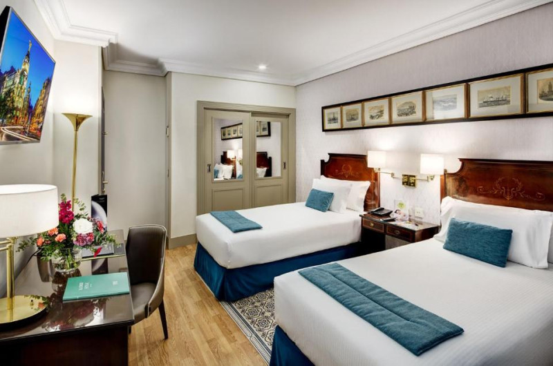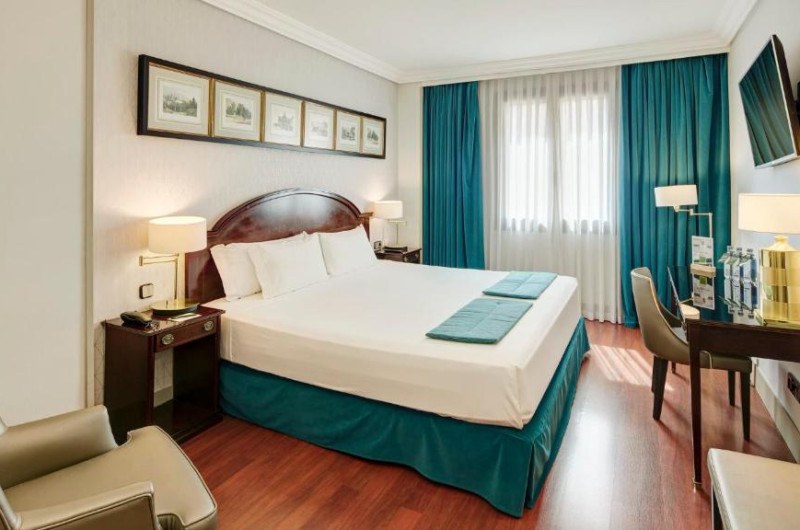 Camerele elegante de la Sercotel Gran Hotel Conde Duque au aer condiționat și baie privată cu duș și articole de toaletă. De asemenea, acestea au seif gratuit pentru laptop, meniu de perne și TV cu ecran plat.