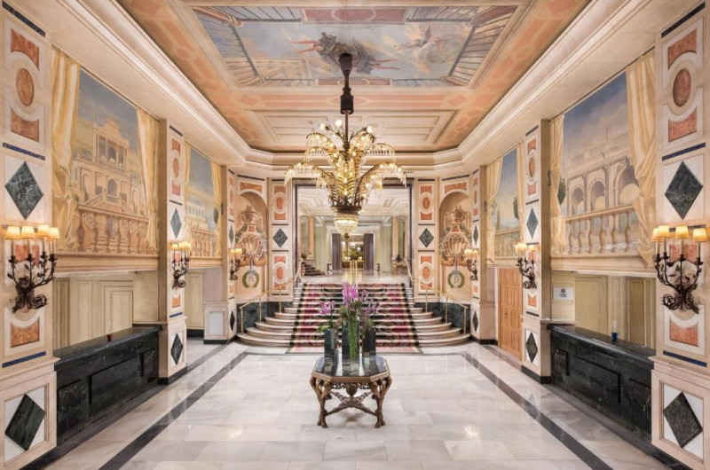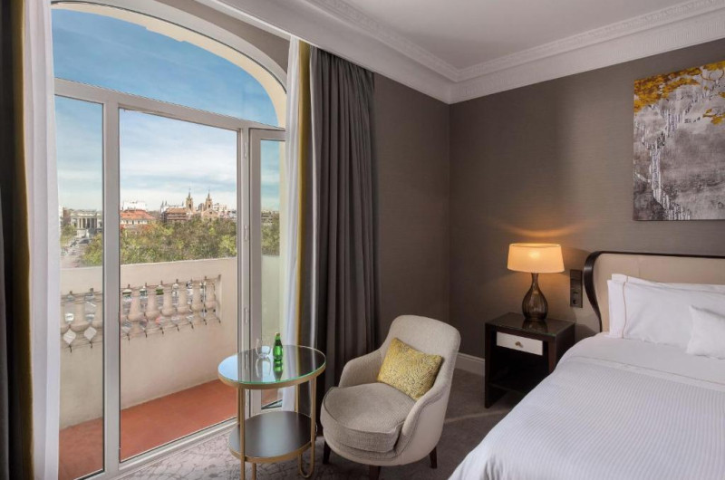 Acest hotel de lux este situat in inima Madridului, in interiorul Triunghiului Artei. Parlamentul este vizavi, iar Palatul Regal si Opera se află la o mică distantă ce poate fi parcursă pe jos. Westin Palace oferă facilităti elegante la numai 300 de metri de Muzeele Prado, Thyssen si Reina Sofia. Hotelul este renumit pentru frumoasa cupolă cu vitralii. Aici puteti servi un fantastic mic dejun tip bufet, fiind acompaniati de muzică bună. Camerele de la Palace sunt elegante si moderne. Acestea dispun de paturi Westin Heavenly premiate si de băi Heavenly. Camere includ, de asemenea, mobilier de epocă si un televizor cu internet. In Palace Bar, sub cupolă, puteti servi cocktailuri, cafea si aperitive. Cu un acompaniament de muzică live, barul a fost făcut celebru de Ernest Hemingway in romanul său Fiesta.