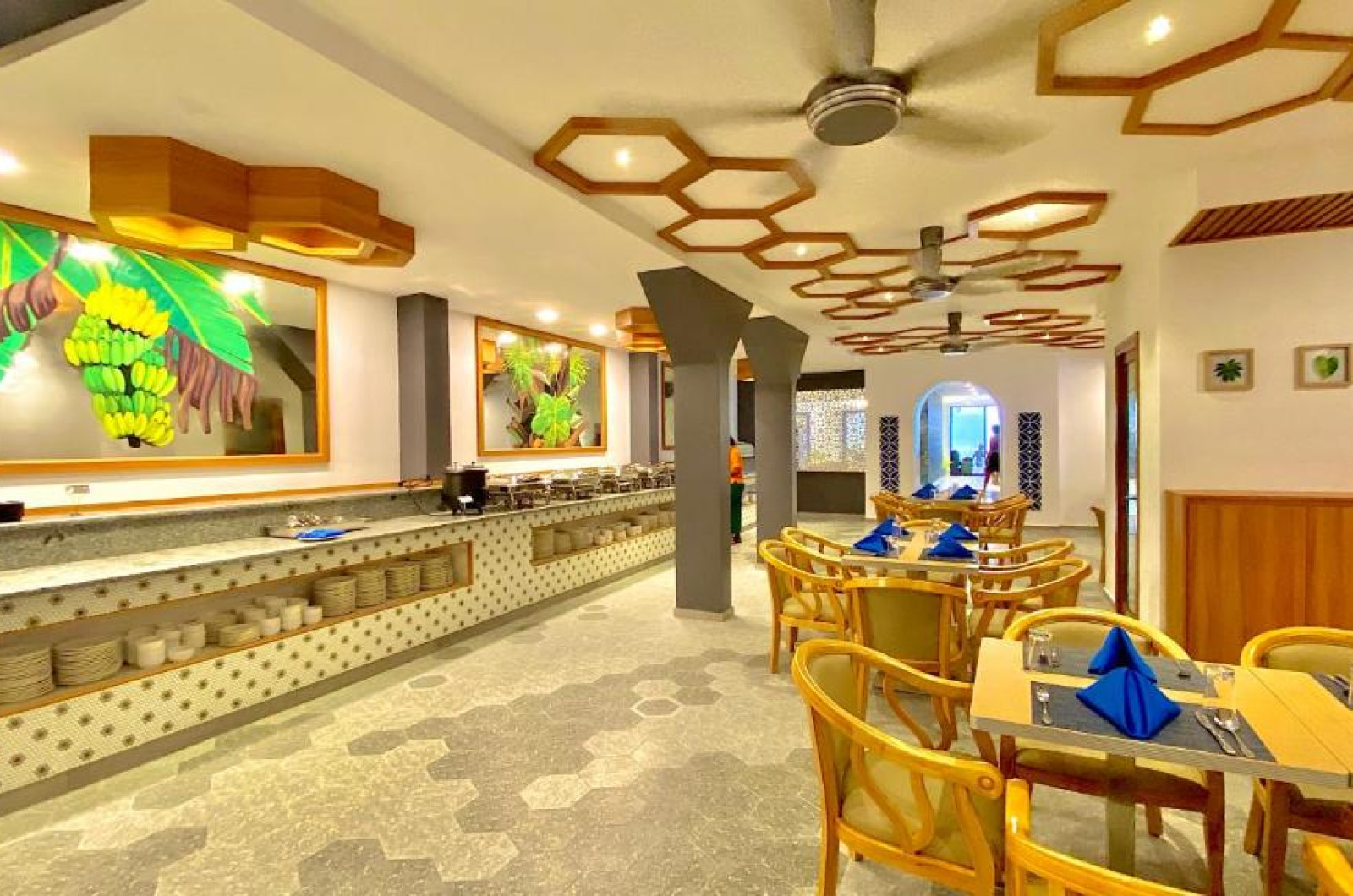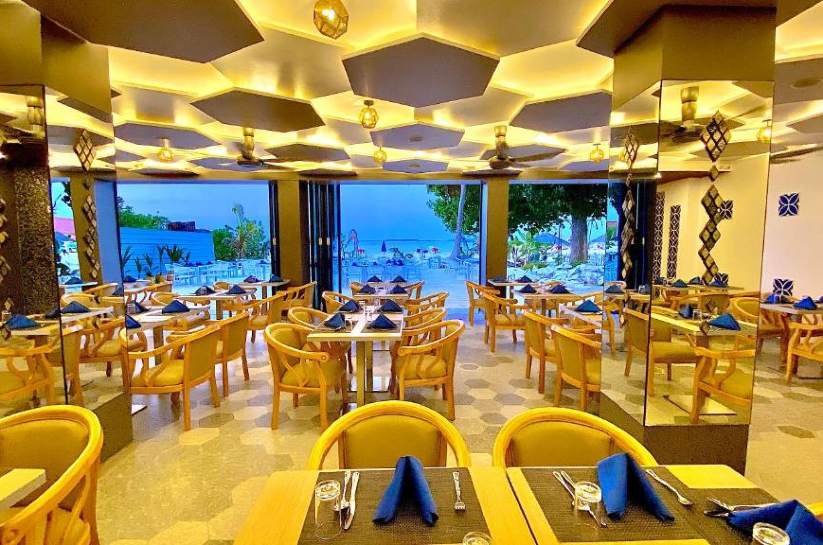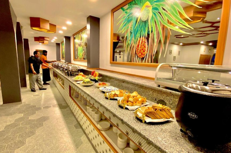 La proprietate poate savura un mic dejun tip bufet, continental sau american. Kaani Palm Beach are un restaurant care servește mancăruri din bucătăria internațională. La cerere, sunt disponibile și preparate fără lactate, halal și vegane.