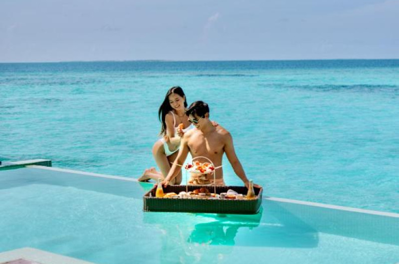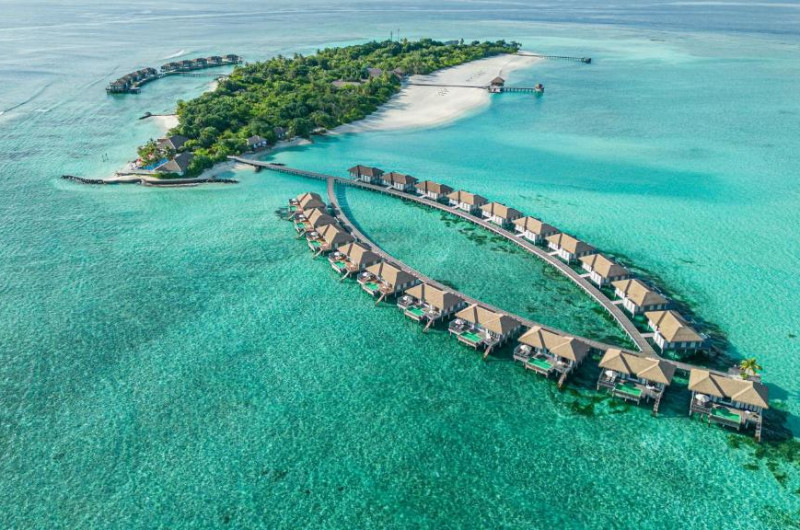 Vilele pe plajă și pe apă se bucură de un confort intim și luxos, cu natură tropicală luxuriantă și apusuri de soare glorios.
