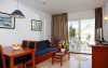 Camerele sunt amenajate cu o zonă de living, o bucătărie și o baie, de asemenea, un aparat de aer condiționat și un sistem de incălzire contribuie la o atmosferă agreabilă. In majoritatea camerelor se găsește cate un balcon. Camerele au o canapea. Sunt disponibile dormitoare separate. Lucrurile de valoare pot fi păstrate in siguranță intr-un seif. Datorită unui frigider, unui aragaz, unui cuptor cu microunde, unui aparat pentru cafea/ceai și unui congelator, chicineta este bine echipată pentru cei ce se aprovizionează singuri. Un telefon cu apelare directă, un televizor cu canale prin satelit/cablu TV și WiFi-ul (contra cost) oferă un concediu confortabil. Băile dispun de un duș / o cadă. Se oferă spre rezervare camere adaptate pentru scaun cu rotile. Complexul oferă 77 de camere de nefumători. Nu se accepta animale de companie.