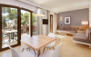 Facilitati apartament: living cu canapea si loc de luat masa, dormitor cu pat matrimonial sau 2 paturi twin