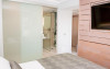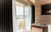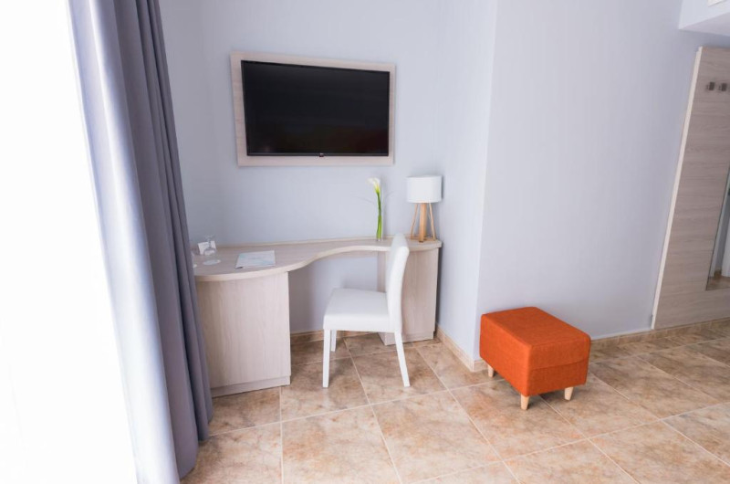 Toate camerele au aer condiționat, unele au balcon privat, majoritatea cu vedere la mare. Fiecare are TV prin satelit, seif (€) și frigider. Baia privată este dotată cu uscător de păr și articole de toaletă.