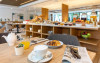 Restaurantul a la carte oferă mancăruri internaționale și vegetariene, in aer liber.