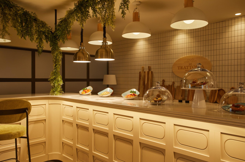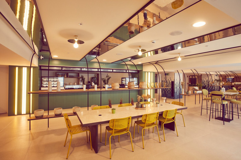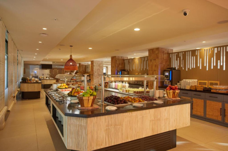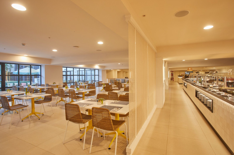 Există diverse locuri unde se poate lua masa: un restaurant, o cafenea și un bar. La centrul de cazare se oferă spre rezervare All-Inclusive-Special. Un mic dejun, un prânz și o cină stau la dispoziție pentru toate poftele. La cerere se pregătesc și meniuri pentru copii. De asemenea, complexul pune la dispoziție gustări. Băuturile alcoolice și nealcoolice sunt gratuite pentru clienți.