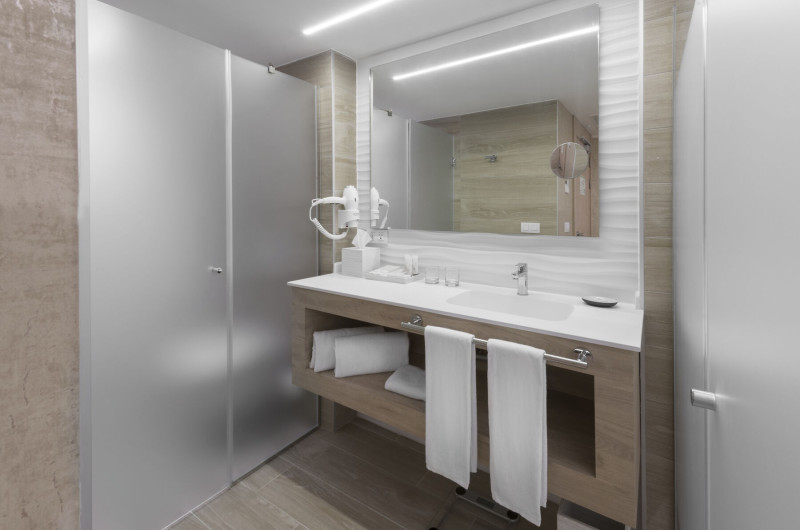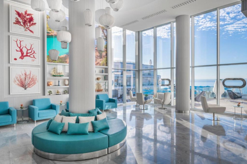 În camere există un aparat de aer condiționat și un sistem de încălzire. În majoritatea spațiilor de cazare clienții beneficiază de vedere spre mare de pe balcon sau de pe terasă. Camerele au o canapea. Sunt disponibile dormitoare separate. În plus, pentru cei mici sunt disponibile paturi pentru copii. De asemenea, sunt disponibile un seif, un minibar și un birou. În chicinetă se află un frigider, un minifrigider și un aparat pentru cafea/ceai. În plus, există un telefon cu apelare directă, un televizor cu canale prin satelit/cablu TV și WiFi (contra cost). În cameră se găsesc și papuci de casă. În băi există un duș. Un uscător de păr, o oglindă de machiaj și halate de baie sunt disponibile pentru folosința zilnică. Hotelul oferă camere de familie și camere de nefumători.