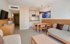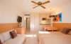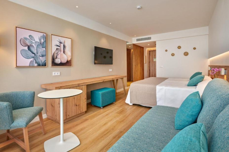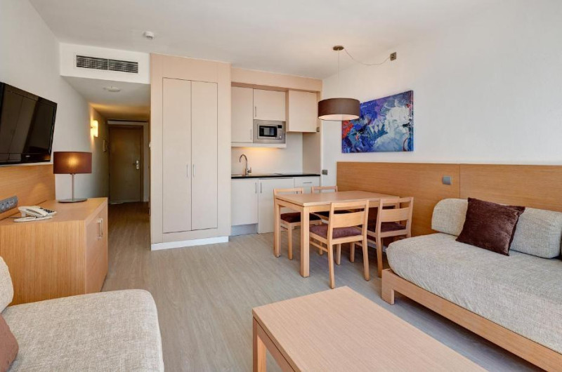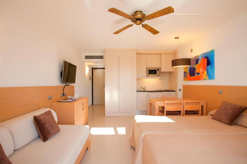 Toate apartamentele de la Hipotels Mediterraneo Club au podea cu parchet, aer condiționat și balcon mobilat, cu vedere la mare sau piscină. Fiecare apartament include zonă mare de living și de luat masa și bucătărie cu plită, cuptor cu microunde și frigider.