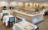 Hipotels Club Mediterraneo oferă muzică și program de divertisment live. Complexul are minicluburi pentru copii de varste diferite. Proprietatea pune la dispoziție 2 restaurante tip bufet și cafenea cu terasă langă piscină. Complexul organizează cină tematică o dată pe săptămană.