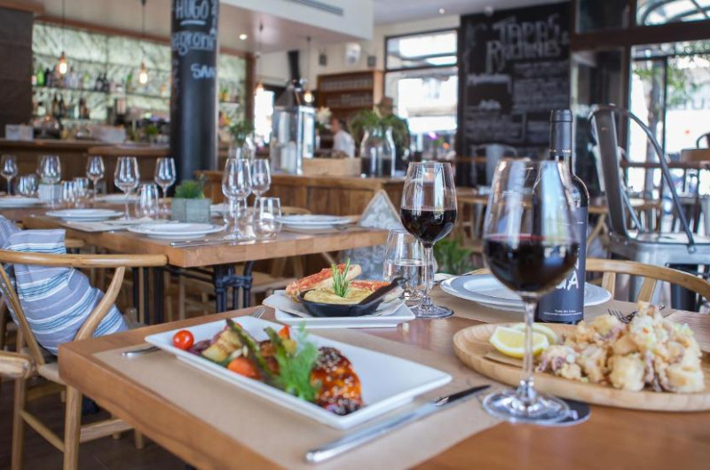 Restaurantul hotelului servește preparate internaționale. Există, de asemenea, numeroase restaurante și baruri in cartierul Santa Catalina din jur.