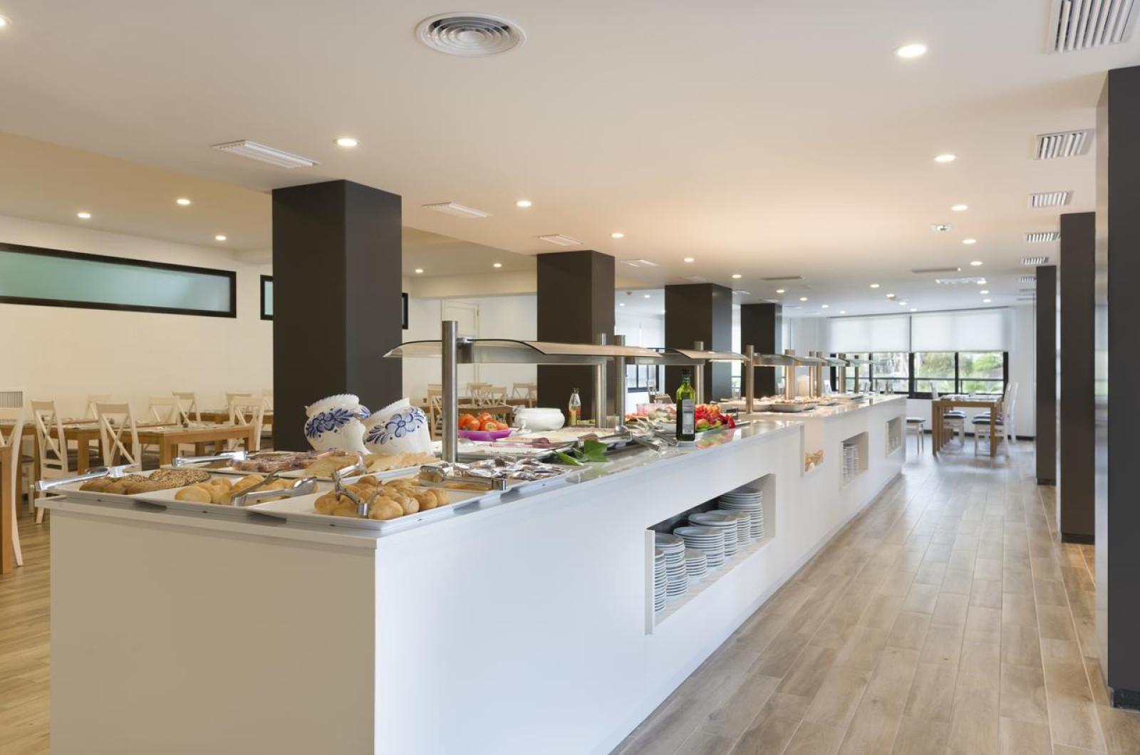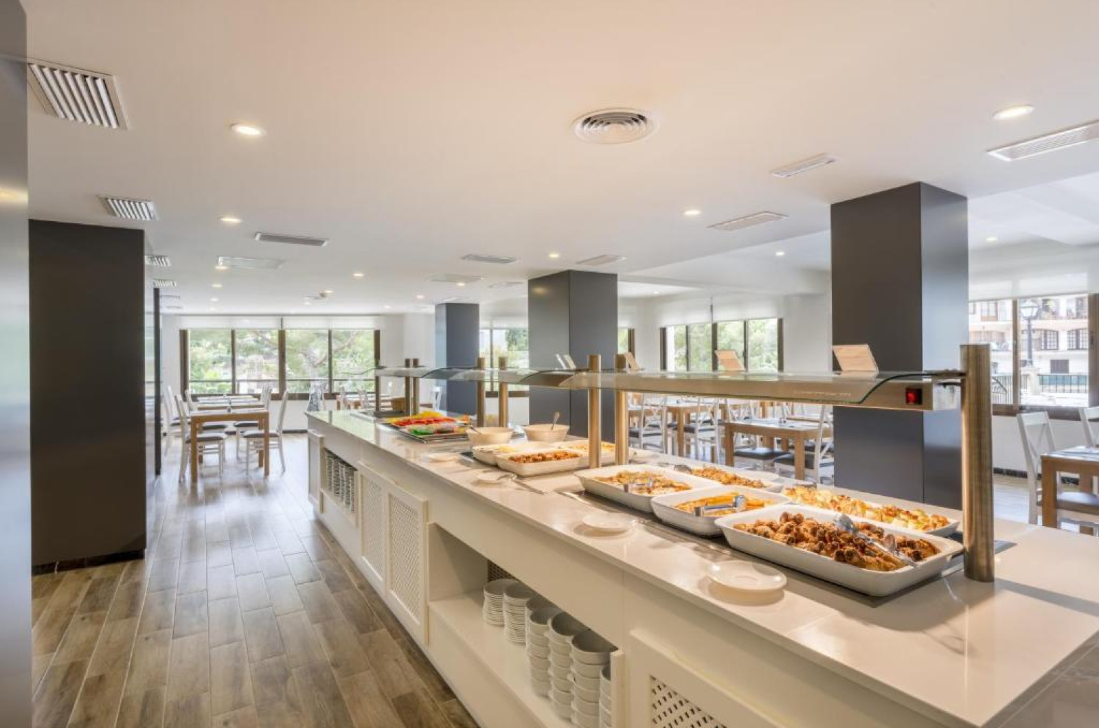 Există o sală de mese cu un bufet cuprinzător și un serviciu de bar in zona piscinei. Există o gamă largă de opțiuni de pensiune, de la pensiune și mic dejun pană la demipensiune, pe care le puteți contracta pentru un supliment zilnic suplimentar, ceea ce inseamnă că sunteți liber să alegeți ceea ce vi se potrivește cel mai bine.