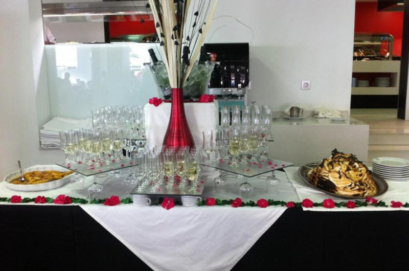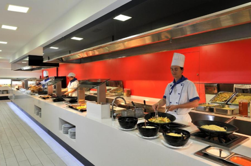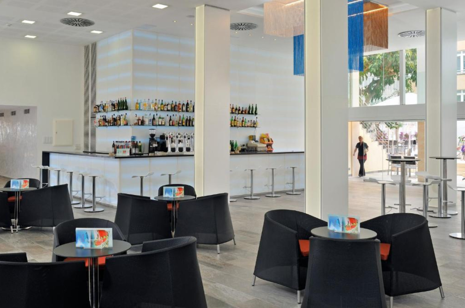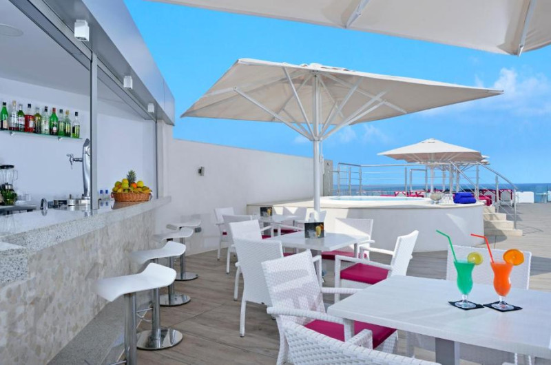 Hispania are un restaurant tip bufet cu terasă in aer liber si vedere la mare. De asemenea, hotelul oferă o cafenea cu vedere la plajă, un lounge bar cu piscină si Sky Barul de la etajul 5, cu vedere la mare si la Golful Palma.