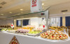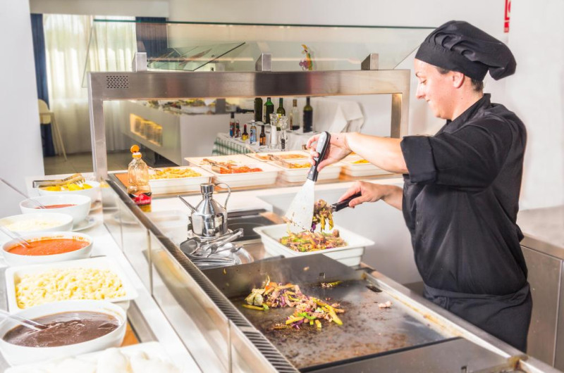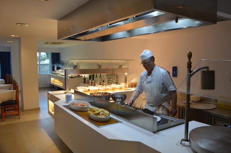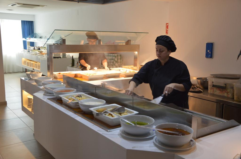 La Sant Jordi oaspeții au la dispoziție un restaurant care servește mâncare în stil bufet. Masa poate fi servită atât în interior, cît si în aer liber, pe terasă, în funcție de vreme. Oaspeţii pot avea diverse băuturi răcoritoare sau alcoolice la bar. În cadrul proprietății există și un snack bar care servește băuturi și gustări.