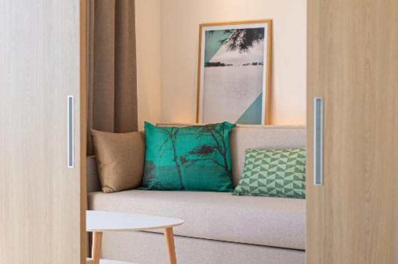 Fiecare cameră este modernă și dotată cu baie cu uscător de păr și balcon. De asemenea, acestea sunt prevăzute cu un living cu TV prin satelit și canapea extensibilă. In plus, complexul are un bar, o sală de mese și recepție cu program non-stop.