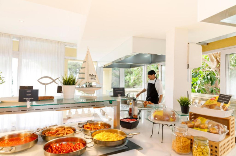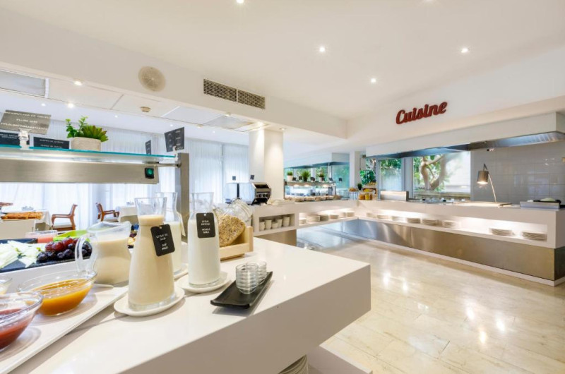 Restaurantul de la Roc Illetas servește preparate internaționale. Hotelul are un bar la piscină si o cafenea cu terasă si vedere spectaculoasă la mare. Pentru serviciul Demipensiune, la cina se ofera bufet salate si bufet desert, iar felul principal va fi a-la-carte.