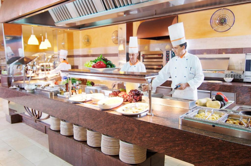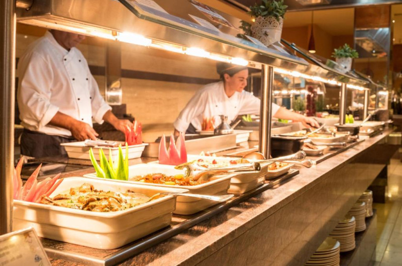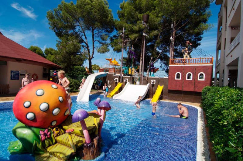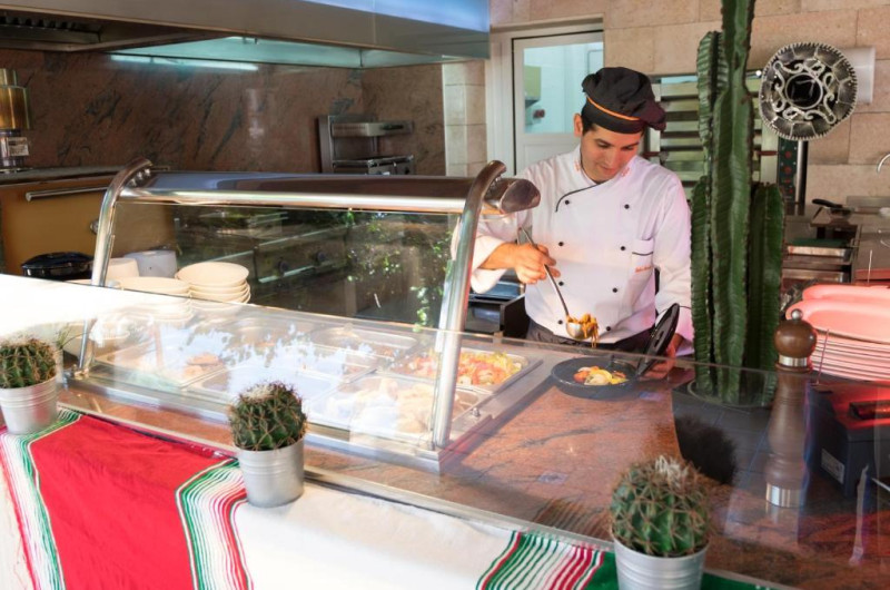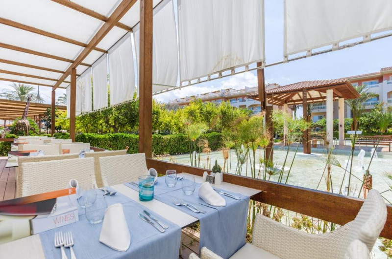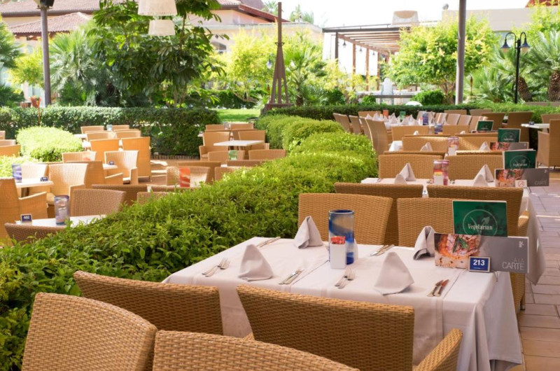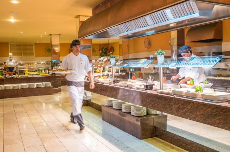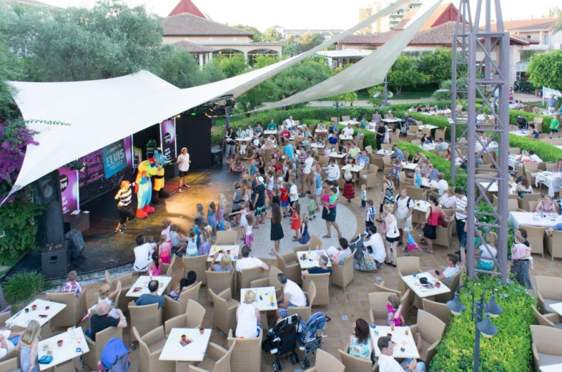 Există un snack bar la piscină, un mini-market și un restaurant tip bufet cu meniuri speciale pentru copii.