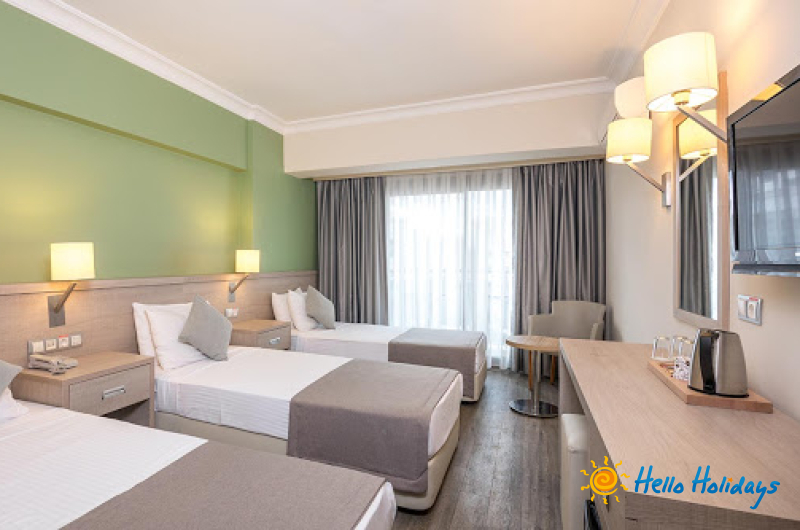 Acest hotel este situat la 1,5 km de centrul istoric al oraşului Marmaris şi la 1 minut de mers pe jos de Marea Mediterană. Facilităţile de lux includ o saună, tratamente de masaj şi acces gratuit la internet Wi-Fi. Există un centru de fitness spaţios şi luminos, cu oglinzi de dimensiuni complete. Piscina mare în aer liber a hotelului este deschisă în funcţie de sezon şi este prevăzută cu şezlonguri. Există o sală de jocuri, iar oaspeţii mai tineri au la dispoziţie o piscină pentru copii şi un loc de joacă. Camerele includ un balcon cu vedere la piscină şi oraş. Toate au aer condiţionat şi baie privată. Puteţi savura preparate turceşti la restaurantul hotelului. După cină, oaspeţii se pot bucura de o băutură de la bar pe terasă. Există un snack bar lângă piscină şi se oferă room service.Datorita dinamicitatii domeniului disponibilitatea ofertelor se modifica de la un moment la altul. De aceea ofertele sunt valabile in limita locurilor disponibile. Agentia nu este responsabila pentru eventualele neconcordante care pot aparea intre informatiile privind tarifele si alte detalii din site si informatiile primite in agentie. In aceste cazuri vor avea prioritate, intotdeauna, informatiile primite in agentie.