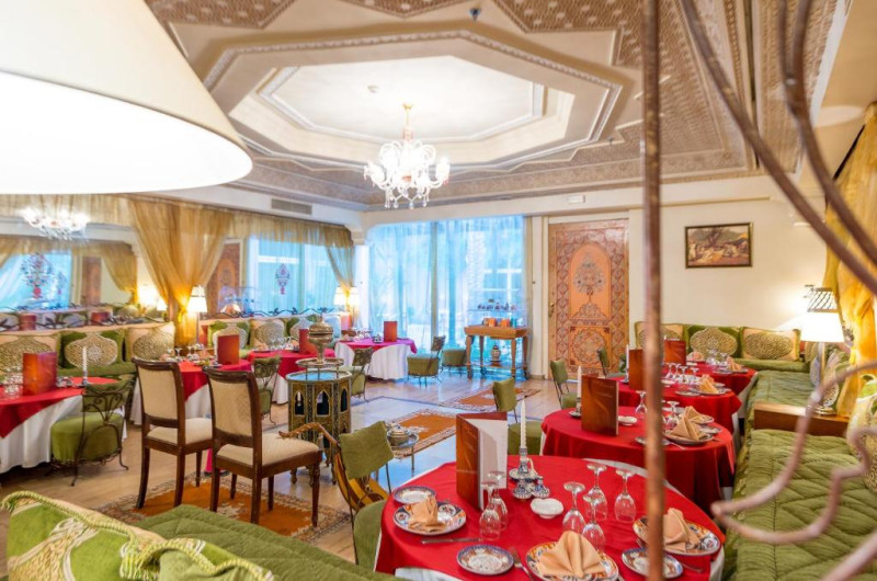 Hotelul Farah Marrakech pune la dispoziție un bar. Oaspeții pot savura mancăruri marocane tradiționale și specialitățile italienești intr-unul din cele două restaurante ale hotelului. Alte facilități includ un magazin de cadouri.
