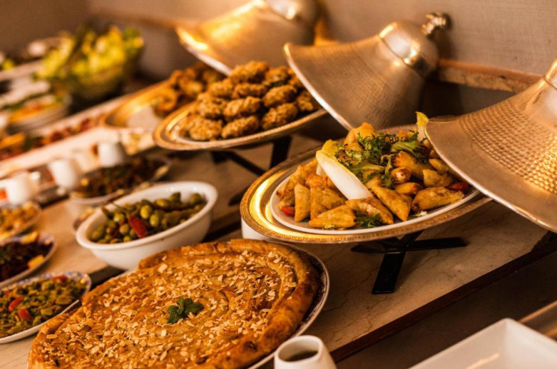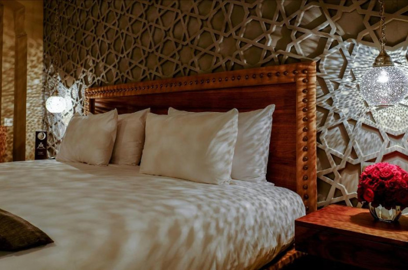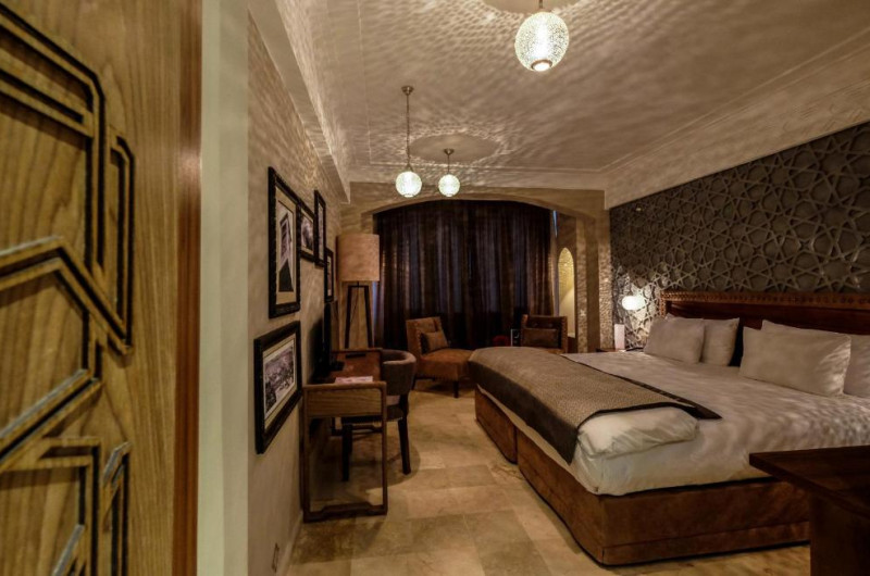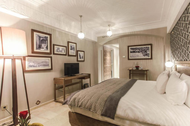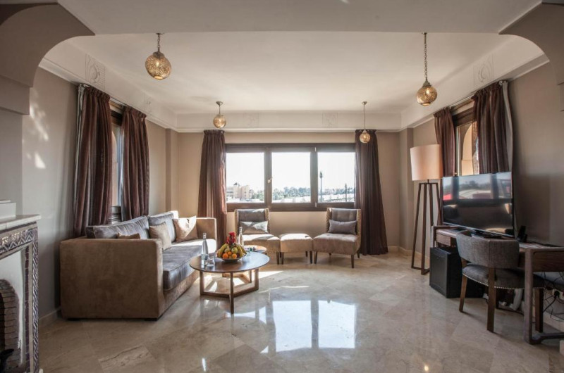The hotel has panoramic terraces that are overlooking the Bab Jdid, one of the 9 gates to the city, the Agdal Gardens and the Atlas peaks.