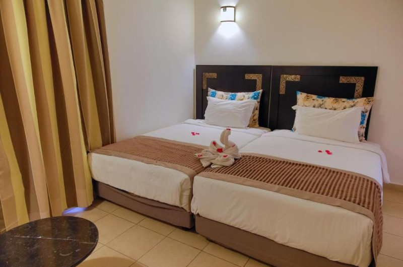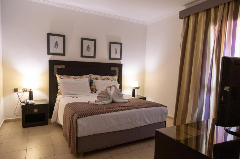 Decorate in culori tradiționale marocane, camerele Hotelului Rose Aqua Park sunt amplasate in jurul unei curți interioare centrale. Fiecare are balcon sau patio privat și TV LCD cu canale prin satelit.