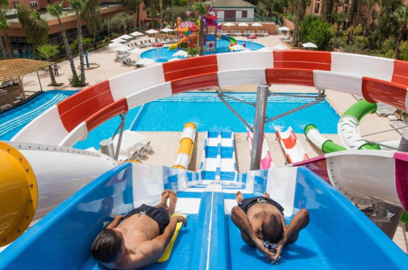 Hotelul Rose Aqua Park se află la 20 de minute de mers pe jos de Jemaa El Fna. Oferă 2 piscine (incălzite iarna), un parc acvatic și un centru spa de balneoterapie cu saună și hamam. Aeroportul Internațional Marrakech-Menara este la 10 minute de mers cu mașina de hotel.