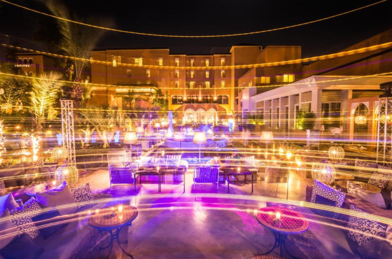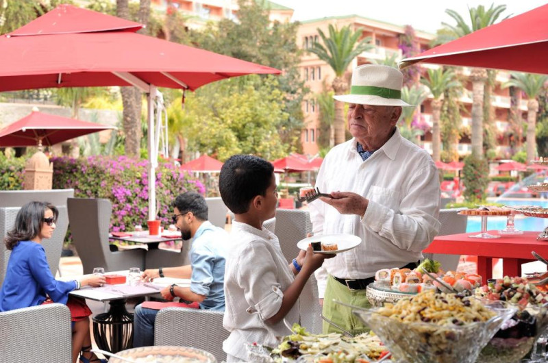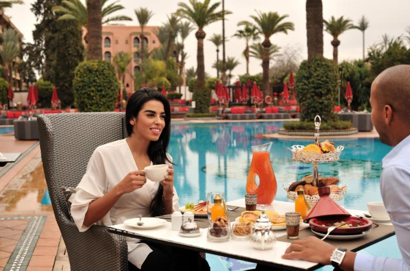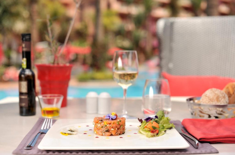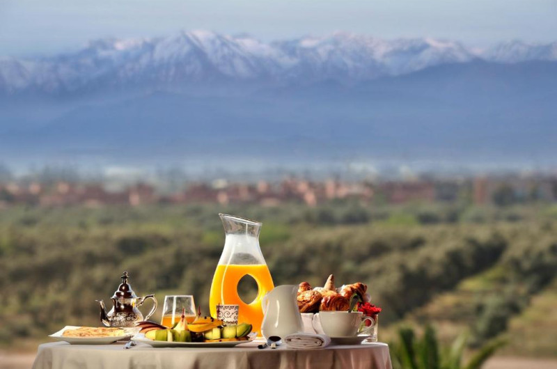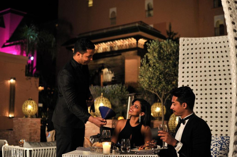 Restaurantele hotelului servesc preparate gourmet inspirate din utilizarea uleiului de măsline sau mancăruri sănătoase de tip spa. L'Orangerie oferă o terasă cu vedere la Muntii Atlas, iar barul Darkum serveste ceaiuri internationale.