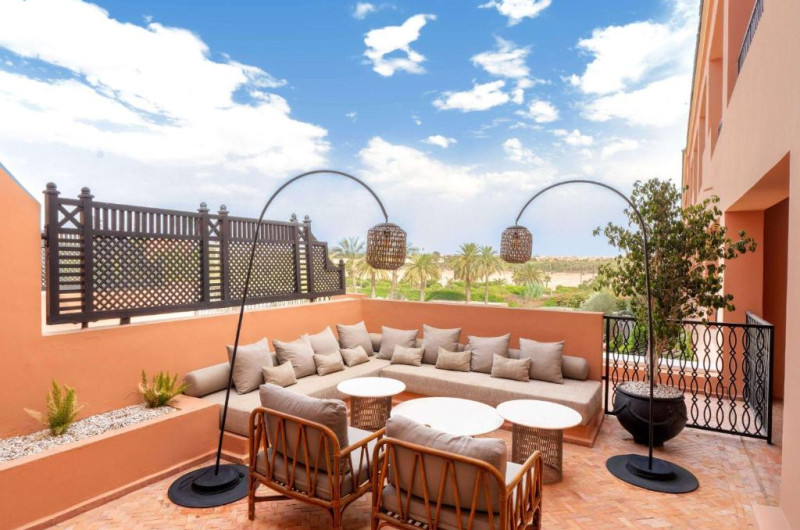 Camerele și suitele de lux ale Hotelului Sofitel Marrakech au balcon privat cu vedere la munți sau la grădini. Toate sunt decorate in stil contemporan cu piese de mobilier moderne, iar unele au un salon separat.